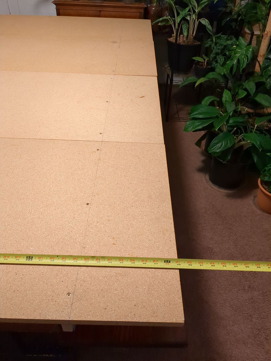 I can't tell you, precisely, how old this set is. I can tell you it was, most likely, manufactured in the 1960s. I bought it about 28 years ago from someone who picked it up at a sale of items from a renovation of a miner's boarding house, turned ski lodge in Park City, Utah. It is solid pine. The dimensions are shown in the pictures above. Now that all the kids are grown, we have downsized and no longer have adequate space for a dining table this size. We constructed a set of 4 slide on table leaves to accommodate our D&D campaigns which, if you are interested, will be included. I can respond more quickly to text at (970)575-2654. I can also be reached through KSL Messages, however, I have experienced a fair amount of missed communication via their technical peculiarities.