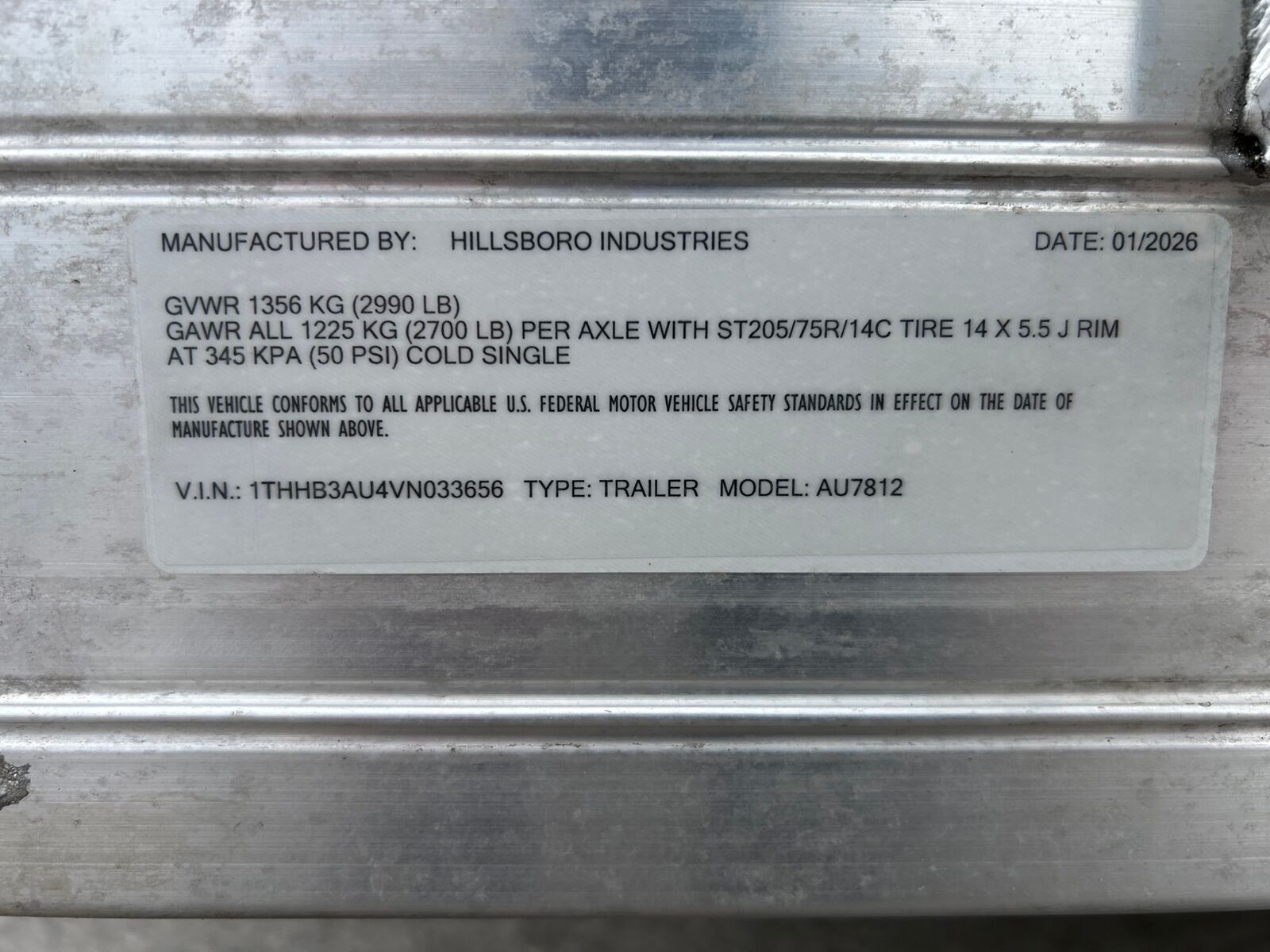 2027 Hillsboro 78"X12' Aluminum Utility Trailer 6T11184