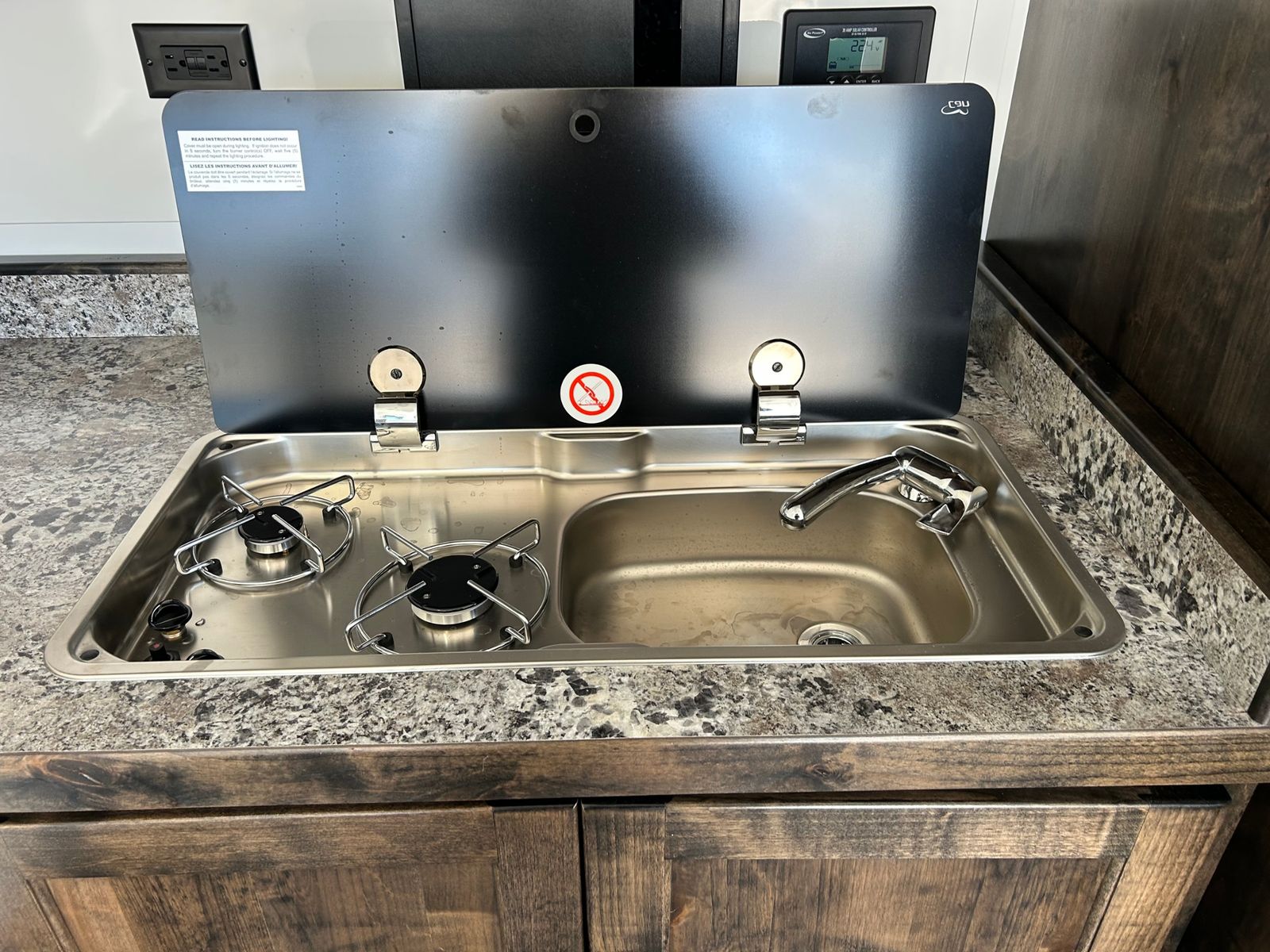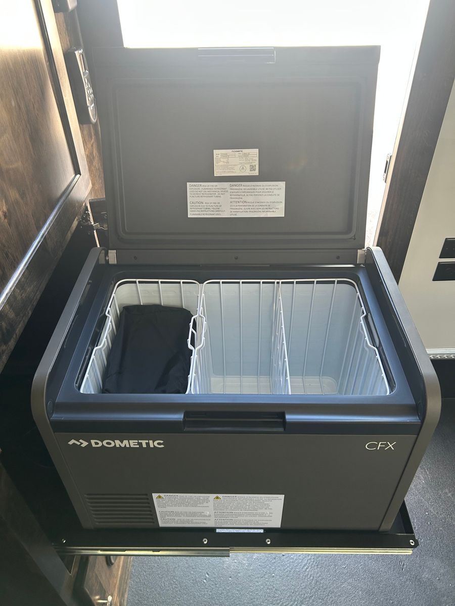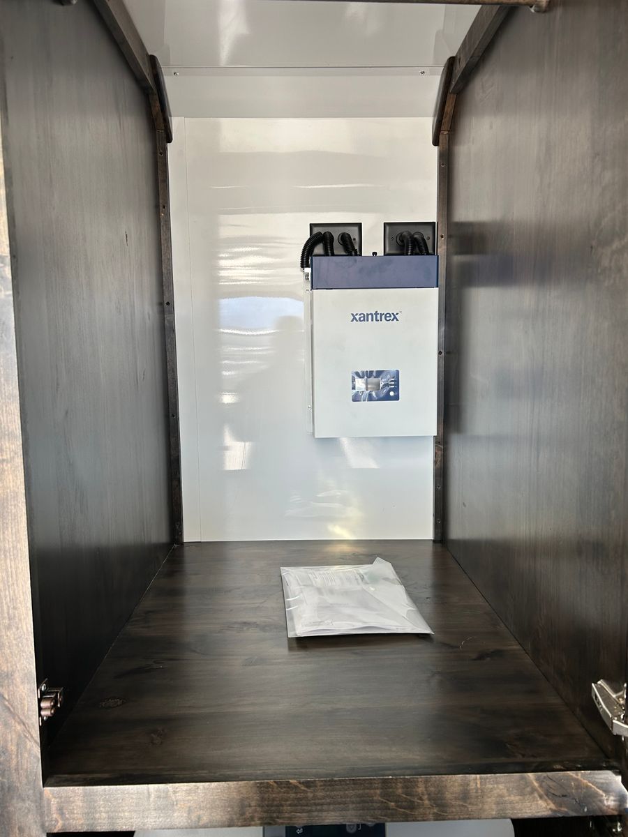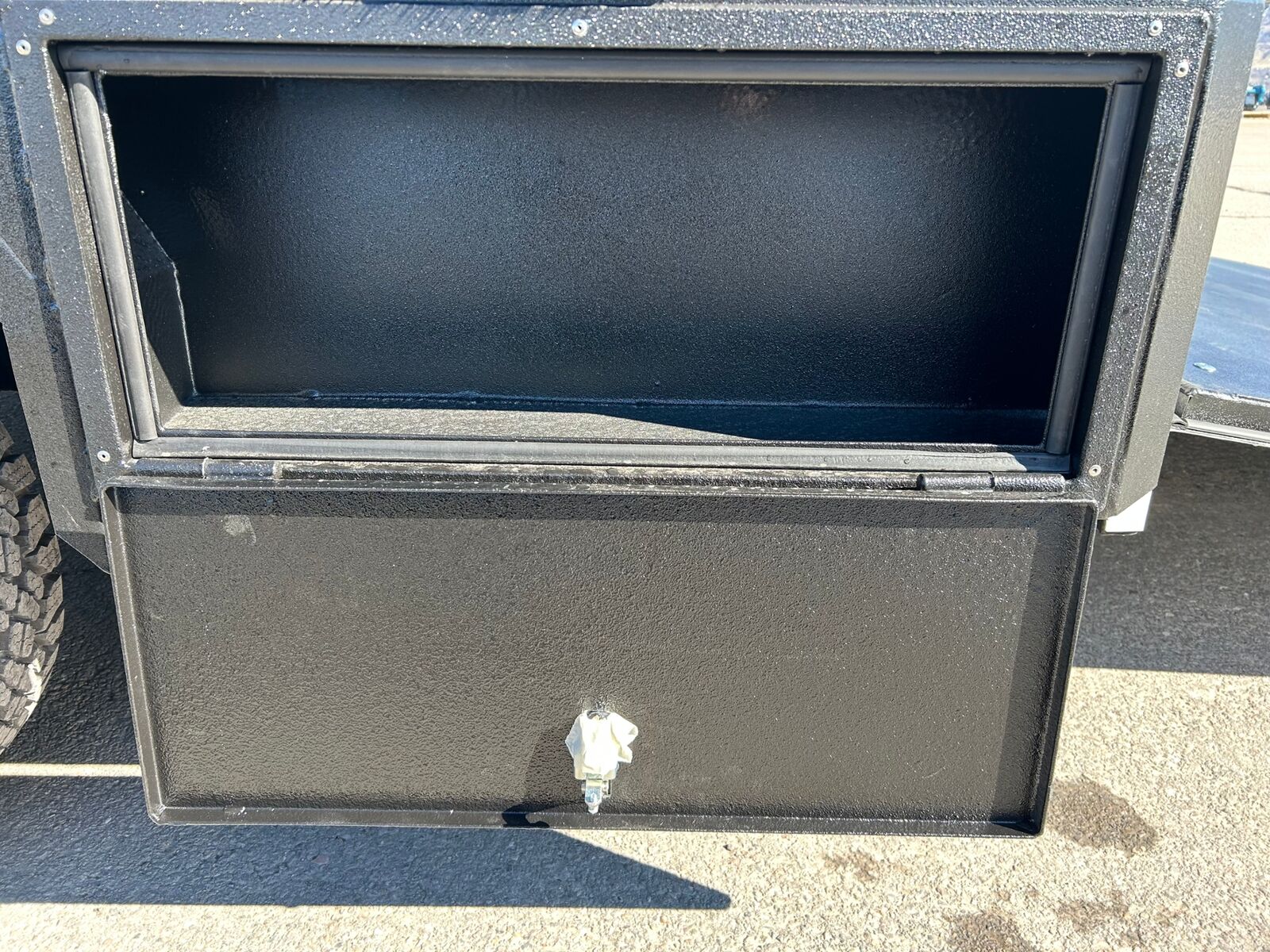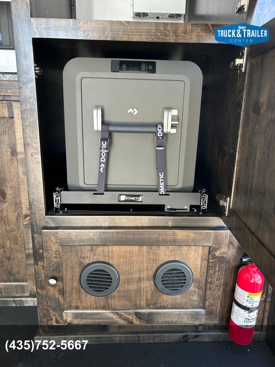 Expedition Package includes 12’ Roof rack with ladder 2nd gas can rack 99” CVT awning Aluminum tie down track each side exterior wall 2-way Maxx Air vent Off Grid Power Pkg - (includes Xantrex 2000 watt inverter/charger, dual 12v deep cycle batteries, 2- additional USB plugs, 2 - additonal 12v plugs, 2 exterior 110v plugs, 3interior 110v plugs, pre-wire for solar panel) On demand water heater 40 Quart 12v fridge/freezer on pull out rack 20,000 BTU furnace 2 - 20# propane tanks Modular / removable fold down table