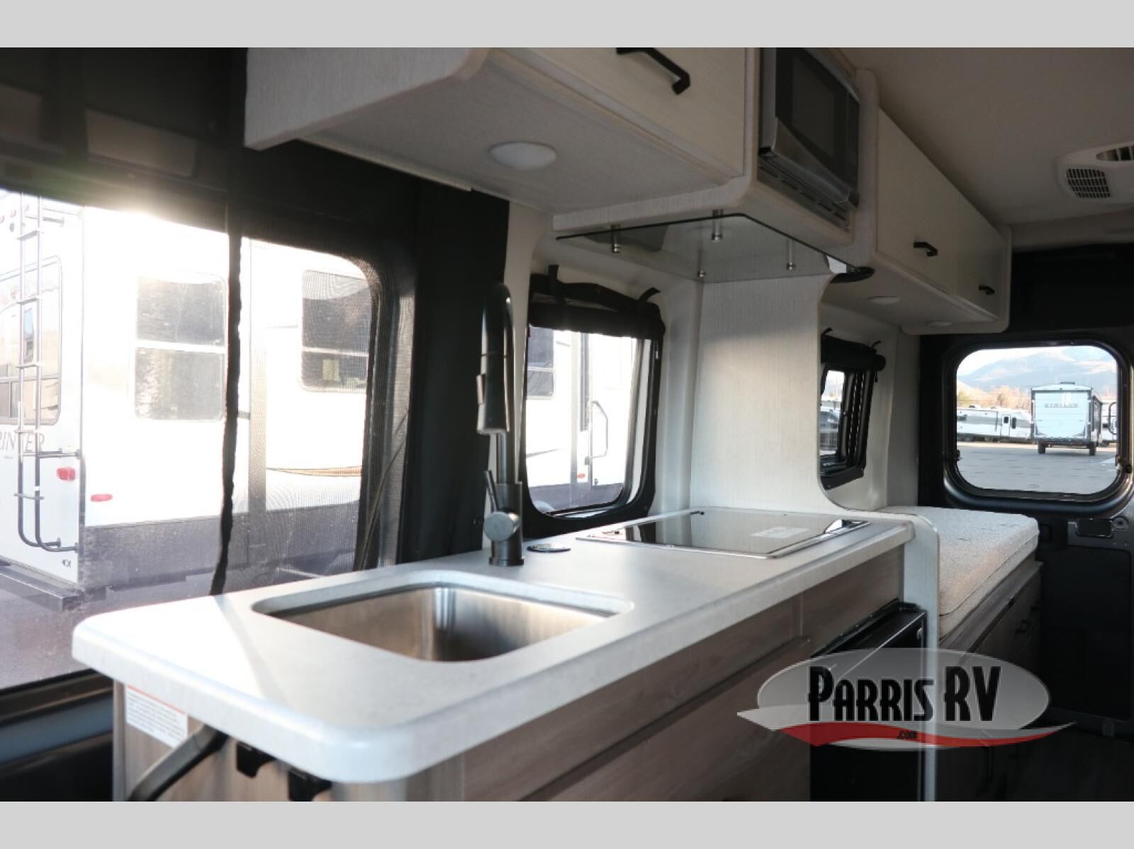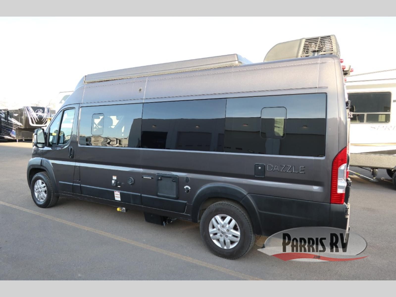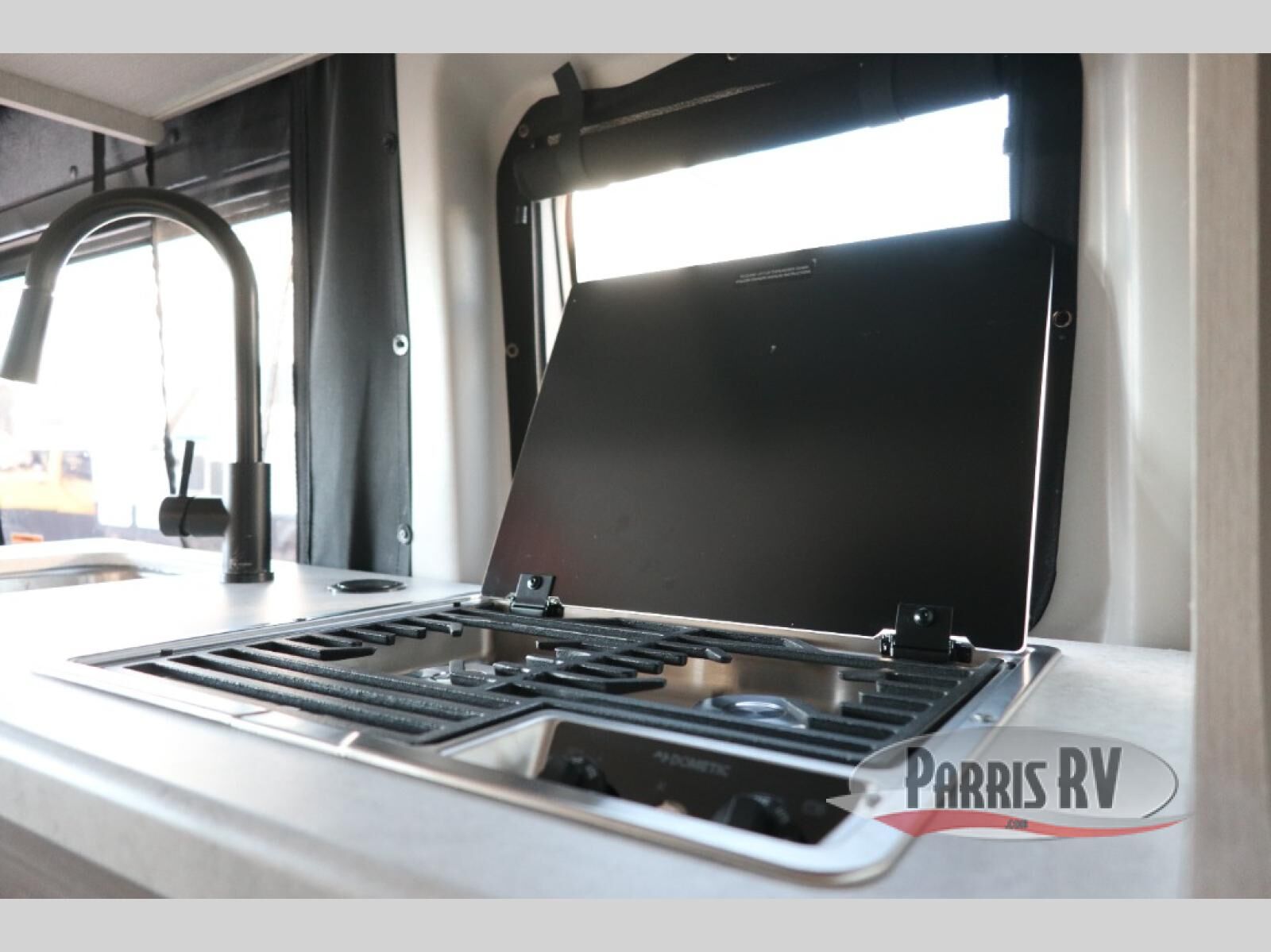 The Dazzle Class B motorhome gets you out there with plenty of features for a great trip! You'll enjoy meals at the dinette table, with a kitchen featuring a single door 12V refrigerator and a two burner gas cooktop with a glass cover. The undermount sink has covers for a cleaner look and expanded workspace. The wet bath comes with a cassette toilet, shower, and a power bath vent. At the rear, you'll find a pull-out king bed, two opening windows, and a rear screen door so you can enjoy a nice cross breeze while you sleep.