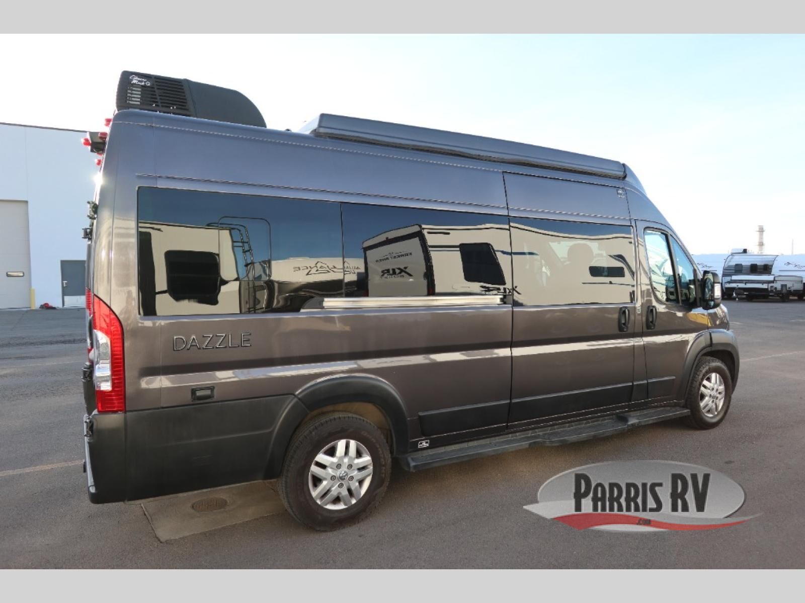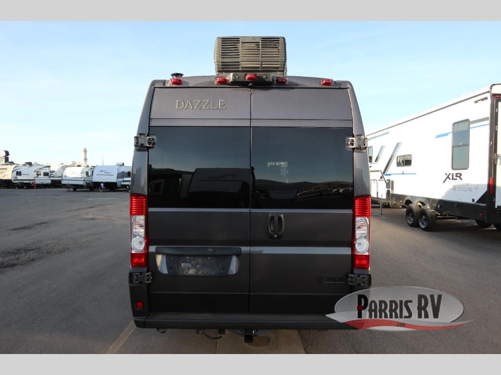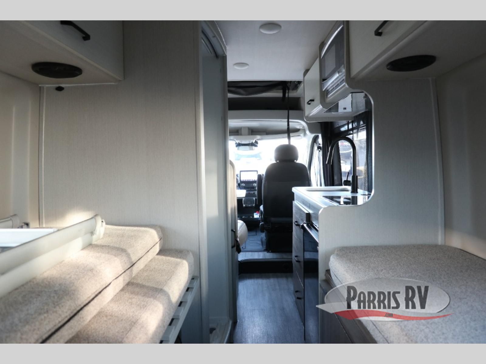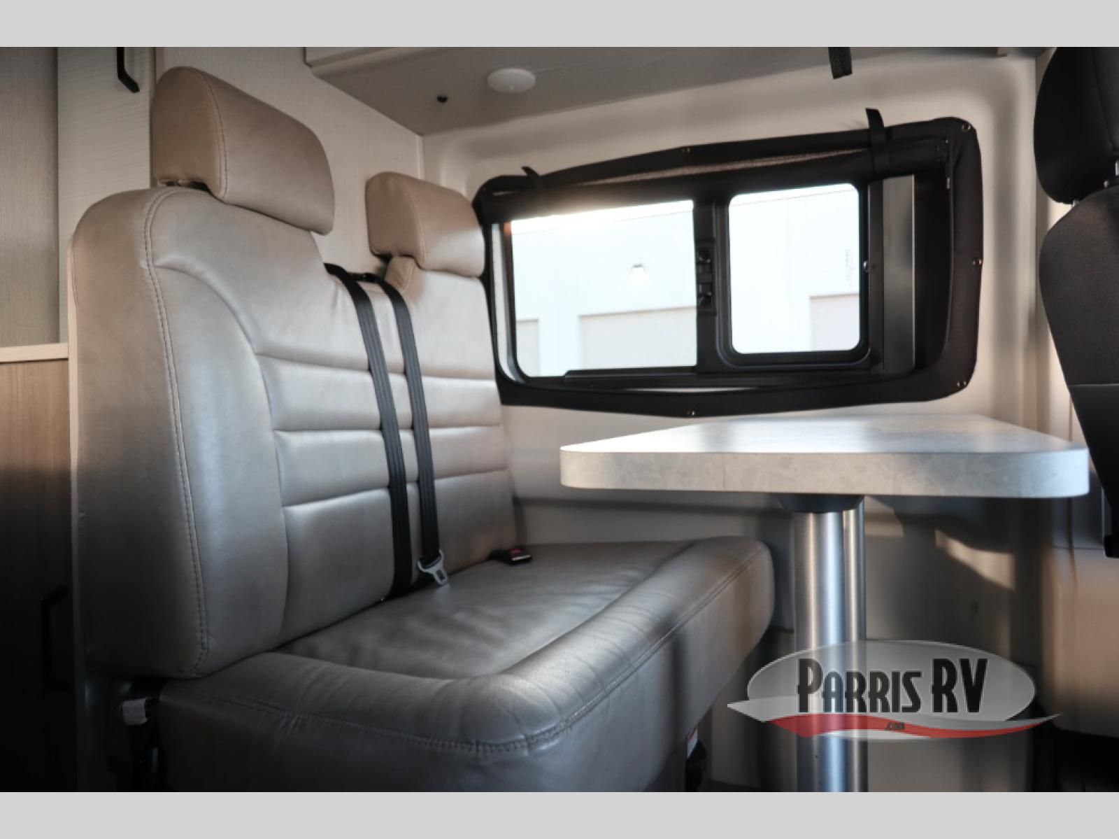 The Dazzle Class B motorhome gets you out there with plenty of features for a great trip! You'll enjoy meals at the dinette table, with a kitchen featuring a single door 12V refrigerator and a two burner gas cooktop with a glass cover. The undermount sink has covers for a cleaner look and expanded workspace. The wet bath comes with a cassette toilet, shower, and a power bath vent. At the rear, you'll find a pull-out king bed, two opening windows, and a rear screen door so you can enjoy a nice cross breeze while you sleep.