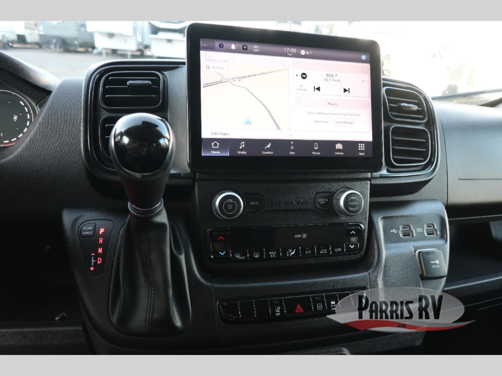 Plenty of amenities are packed into the Thor Motor Coach Dazzle Class B motorhome. Built on the RAM ProMaster® 3500XT gas window van chassis, these come with a 3,500 lb. trailer hitch, an Onan® RV QG 2800 gas generator, and a Truma® Combi Eco LP furnace and water heating system. You'll have a convenient Rapid Camp+® Multiplex wiring control system, which allows you to operate features like lights, generator, slides, awnings, HVAC, and more with an easy to use small handheld remote. Inside, you'll enjoy residential vinyl flooring, a soft-touch vinyl ceiling, and pressed countertops with an undermount sink and sink covers to name a few comforts.