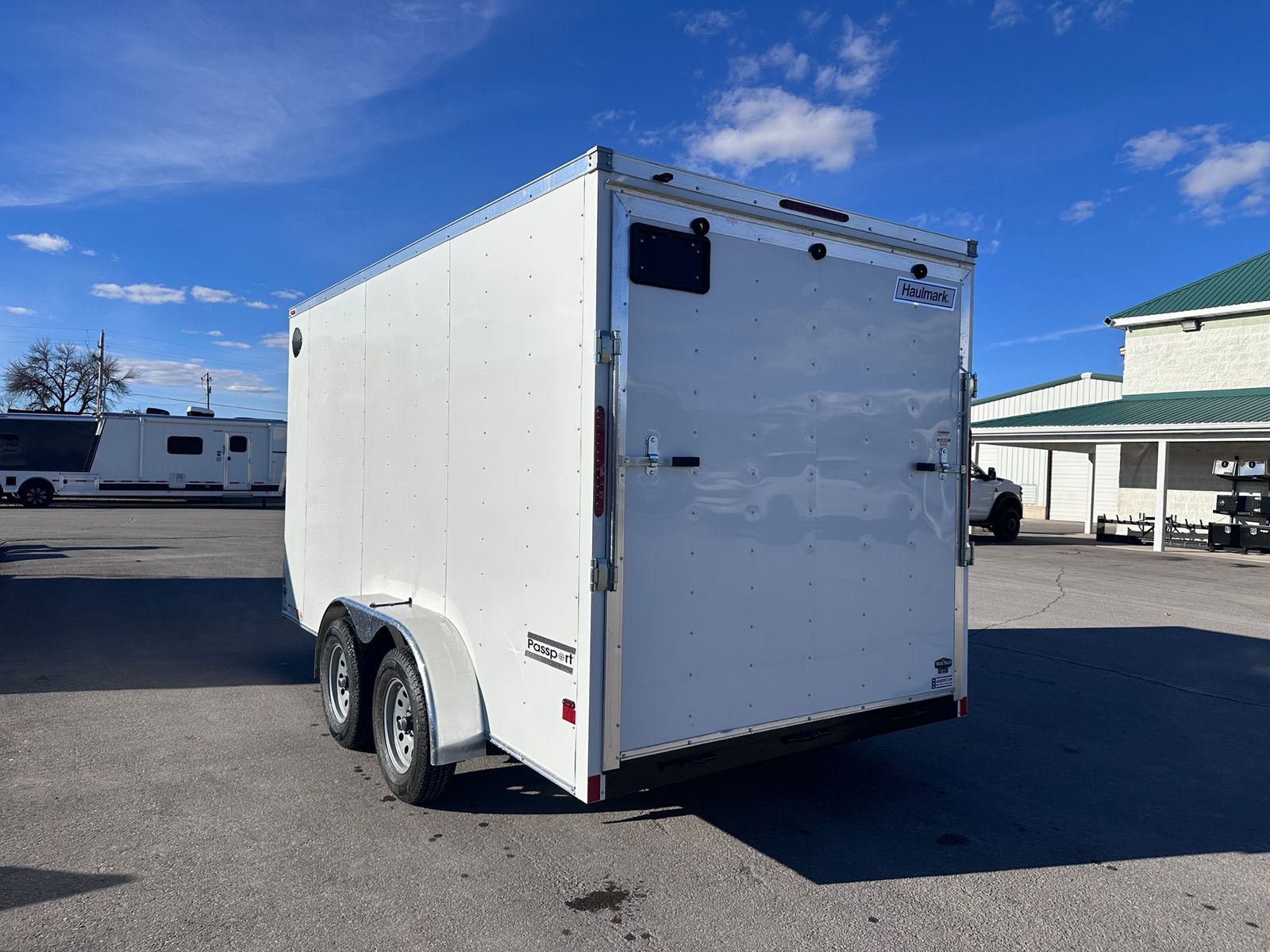 7' Tall Entire Chassis Undercoated White .024 Aluminum Exterior (With Screws) Safety Chains 3/4" PlexCore High Performance Decking Silver Mod Wheels E-Z Lube® Hubs Pass-Thru Side Door with Flush Lock & Dead Bolt Rear Ramp Door with Spring Assist Flow-Thru Sidewall Vents 12v LED Exterior Lighting 16" OC Floor Crossmembers 16" OC Vertical Posts 15" Radial Tires 16" Starbright Stoneguard Smooth Aluminum Radius Fenders 12v LED Dome Light Economy Sidewall Liner Spring Axles with 4" Drop 1-Year Limited Warranty 2" x 3" Tube Main Rails (Single Axle) 2" x 4" Tube Main Rails (Tandem Axle) 24" OC Tube Roof Structure