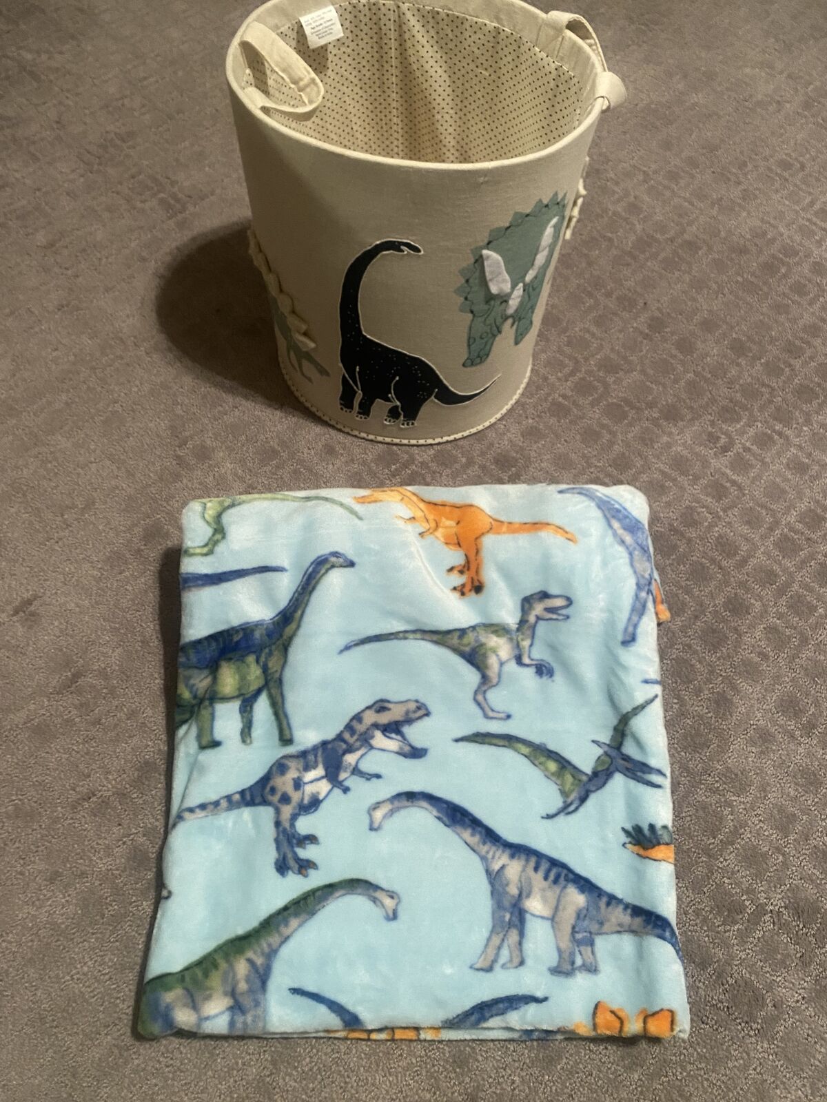 VenmoDarling dinosaur themed twin bedding, throw blanket, 2 decorative throw pillows, 1 pillow sham, and toy/hamper, as well as royal blue vinyl wall stickers(new) to entirely decorate your child's room. All items sold together $35. Most items never used or gentley used.