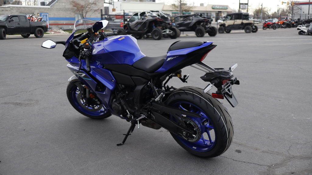 2026 Yamaha YZF-R7 SUPERSPORT REVOLUTION The 2026 YZF-R7 delivers proven CP2 power, a sharper handling chassis and ultra-sleek new styling that embodies the exhilarating next-generation of R World. Packed with a range of new features including a redesigned frame, enhanced ergonomics, an advanced electronics package and smartphone connectivity, the YZF-R7 is revolutionizing the Supersport class with the ultimate combination of performance, accessibility and price. Features may include: Ultra-Sleek New-Generation Styling Sharp new aerodynamic styling fuses beauty and functionality with a compact front fairing design, slim, contoured side fairings, new aerodynamic winglets and LED turn signals now integrated into the rearview mirrors. Minimalist LED headlight and position lights combine with the R7's signature M-shaped duct and tail wing to reflect unmistakable Yamaha R-Series DNA from every angle. Iconic 70th Anniversary Edition Styling The new 2026 YZF-R7 70th Anniversary Edition's aerodynamic next-generation R-Series design combines with iconic white and red speed block livery, gold Yamaha Tuning Fork emblems, and Anniversary Edition badge to celebrate the 1955 birth of Yamaha Motor Company and seven decades of motorsports excellence in standout style. Torquey CP2 Powerplant Yamaha's proven 689cc twin-cylinder DOHC fuel-injected engine delivers excellent power and performance throughout the rpm range for an exhilarating ride and a true Supersport experience. Its 270-degree crossplane crankshaft provides linear torque for exciting acceleration and limited vibration. Tuned Induction Contributing to the visceral connection between rider and machine, the new YZF-R7 adopts the same intake duct shape and asymmetrical funnel lengths as the current MT-07, harnessing the bike's induction roar for an enhanced feeling of acceleration from its renowned crossplane CP2 engine. New Five-Inch TFT & Enhanced Connectivity A stunning new full-color five-inch TFT instrument display features four selectable themes along with a track-specific mode. Smartphone connectivity enabled through Yamaha's free Y-Connect app allows riders to receive message notifications, calls and listen to music (through use of an aftermarket Bluetooth® headset, not provided). Additionally, full turn-by-turn navigation is now available through the free Garmin® StreetCross app. New Third-Generation Quickshifter The 2026 YZF-R7 is equipped with Yamaha's advanced third-generation Quick Shift System (QSS), enabling quick, clutchless upshifts and downshifts under both acceleration and deceleration. This system makes full-on acceleration on the track more exciting and downshifting faster and smoother with less chassis disruption when changing gears. The system operates at speeds above 10 mph, with upshifts above 2,000 RPM and downshifts above 1,600 RPM.