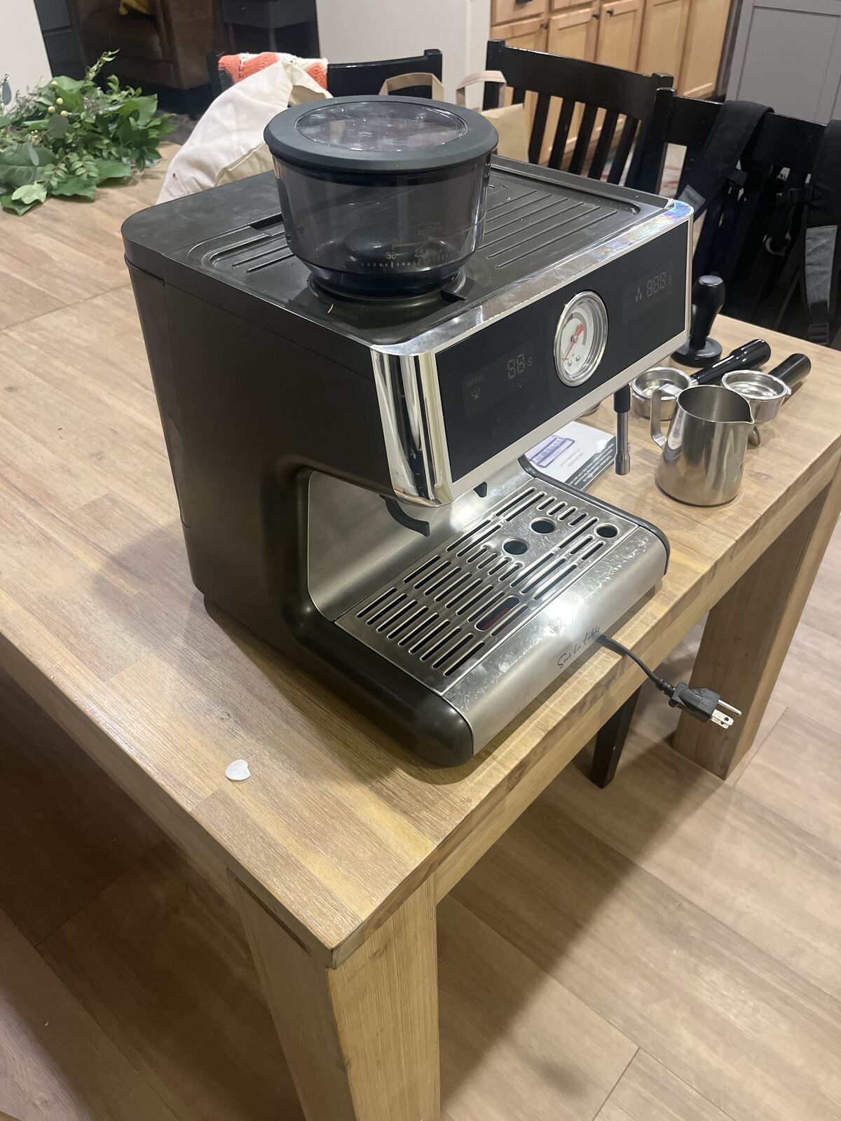 VenmoThis is a Sur La Table espresso machine that has a double boiler heating system. It comes with all of the accessories that we have accumulated over the last few years. The machine works great because it has been well taken care of with regular descaling and cleaning after each and every use. We have loved this machine and the drinks we learned to make on it. We just upgraded to a little nicer machine so we are selling this one. The accessories alone probably add up to a value of $150 but they are no good to us now with a different size portafilter