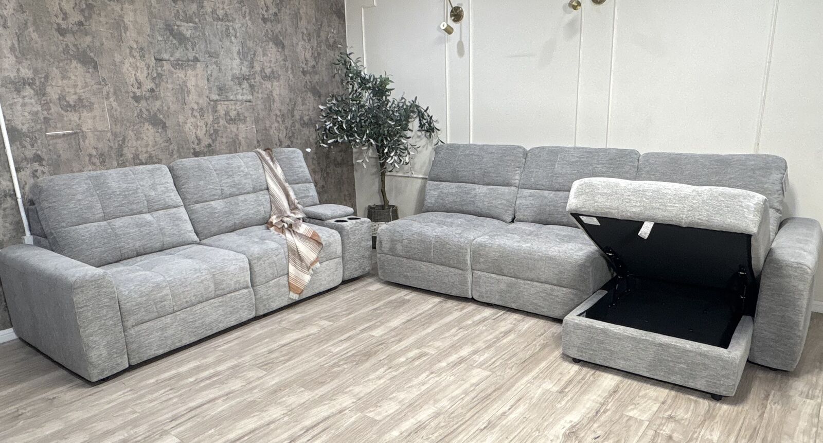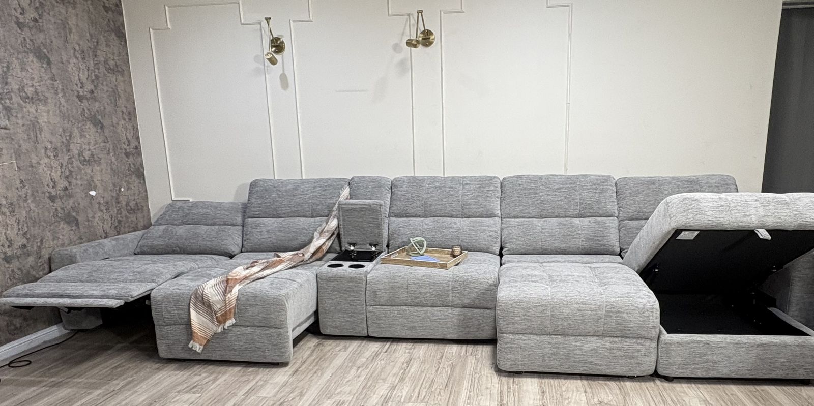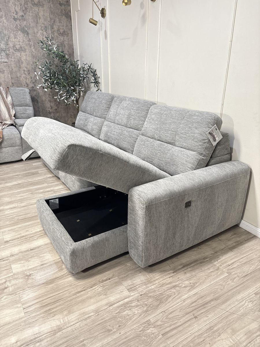 Personalize Comfort with Luxurious Lounging Capability The Emma Fabric Power Sectional with Power Footrest is a versatile and modern upholstered sectional with ample room for family and friends. Offering both style and functionality, the Emma features a power recliner, a storage chaise, and 2 power sliding seats that extend to create a cozy lounging space. Designed for flexibility and comfort, the power recliner can adjust to infinite positions while the 2 power sliding seats can extend your seat from 42.5” all the way to 61.5” to create the ultimate relaxation experience. Keep devices within easy reach and fully charged with 3 USB ports and 3 USB-C ports, which are located in the storage console and on each arm. The storage console has two removable cup holders that are dishwasher safe. Fully padded arms provide a refined, tailored look, while the fully padded chaise design offers comfort with full leg support.