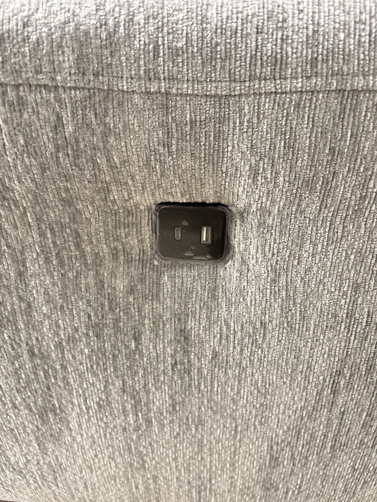 1 Power Recliner with Power Footrest 3 USB Ports, 3 USB-C Ports 2 Power Sliding Seats 1 Storage Console with 2 Cup Holders