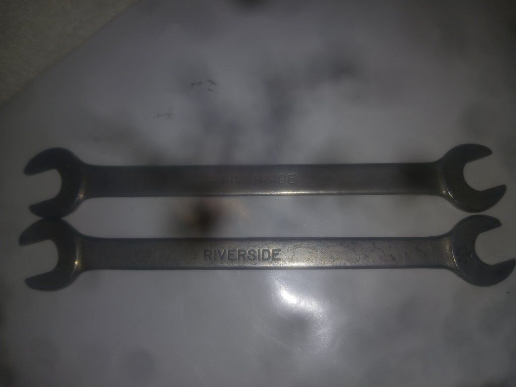 PayPal2-Antique Riverside 1/2" - 9/16 open end wrenches, thin wrenches for working on vehicles in tight spaces.. dates back to 1930's $10 ea..$20 for both