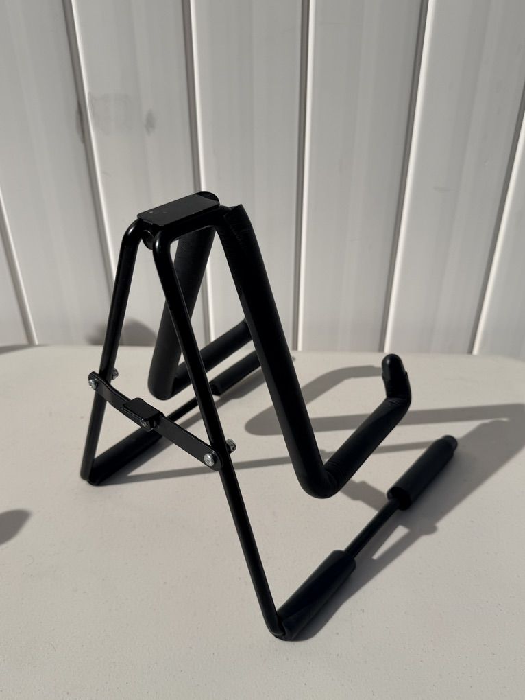 VenmoSimple collapsible foldable guitar stand. As phone on the parts where the guitar goes.