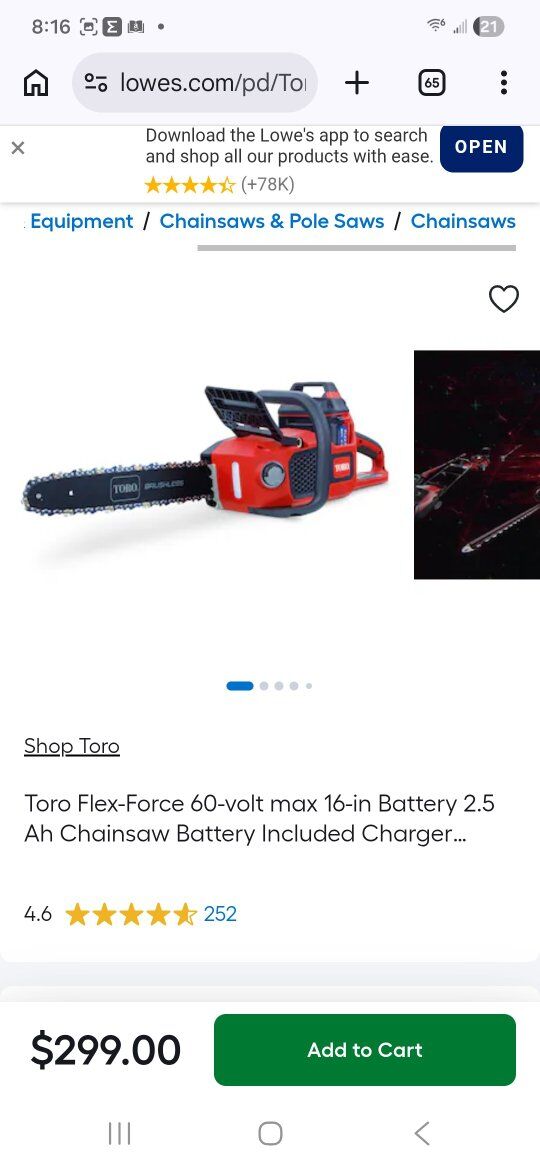 Zelle60V Max cordless chainsaw brand new never opened. Retails for $299.