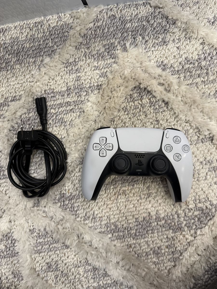 ApplePayPS5 console for sale with 1 white DualSense controller and power cable. Ready to use.