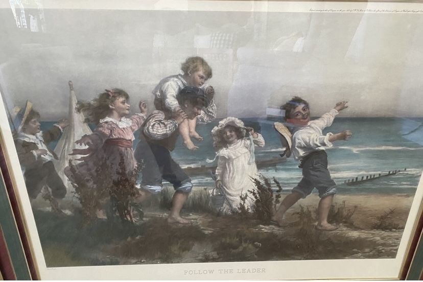 Follow The Leader, by: Fred Morgan, Victorian children on a beach. Framed & Matted, Signed by Fred Morgan in print on the lower left. (See pic) ** Marked on the upper right margin: Entered according to Act of Congress in the year 1907, by C.W. Faulkner and Co. Ltd. Printed in Vienna. Smoke free home.