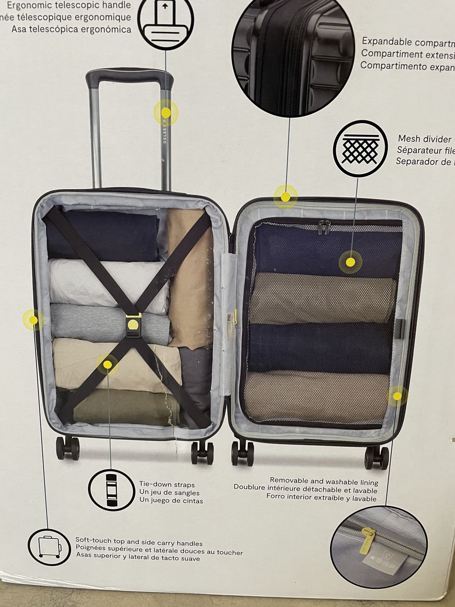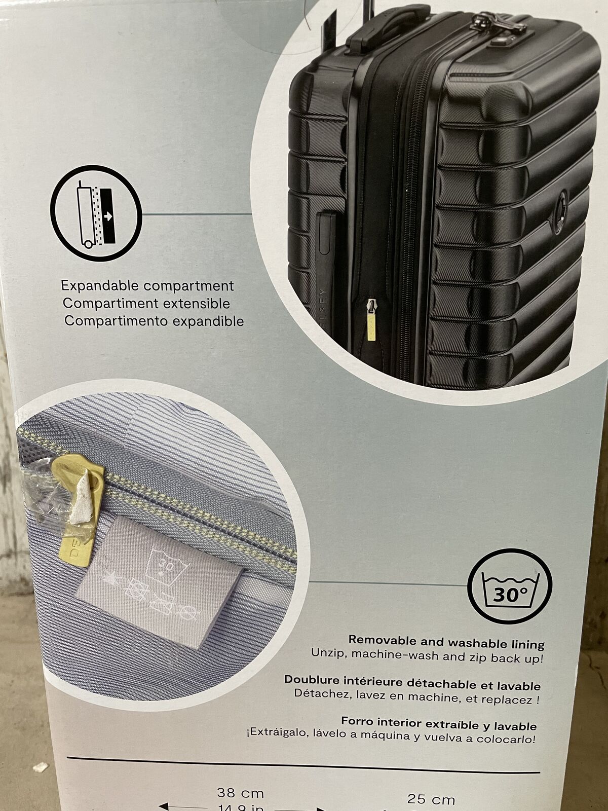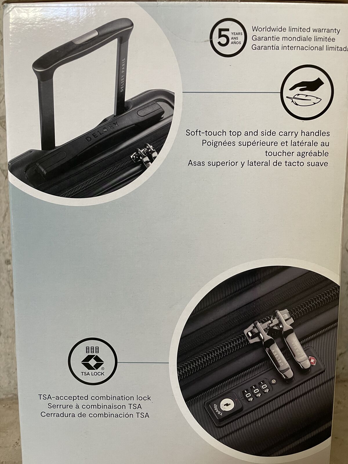 ApplePayNIB Delsey Paris Expandable Carryon Hard Case with TSA approved combination Lock.