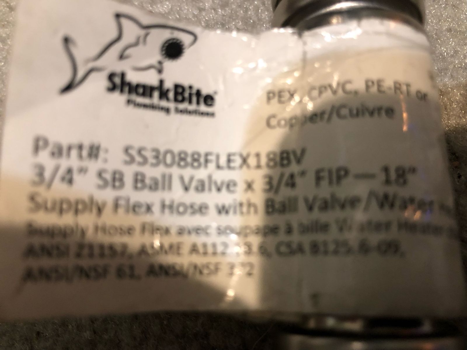 $25 - Shark Bite Supply Flex Hose Water Heater Ball Valve 3/4-inch SB Ball Valve x 3/4-inch FIP x 18 inch length x 3/4 inch - 1 availaable (pictures #4, #5, #6, #7)