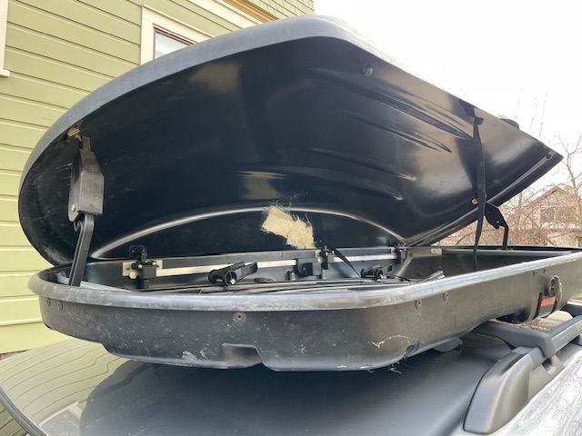 Large locking rooftop cargo box, 80" L x 32" W x 16" H