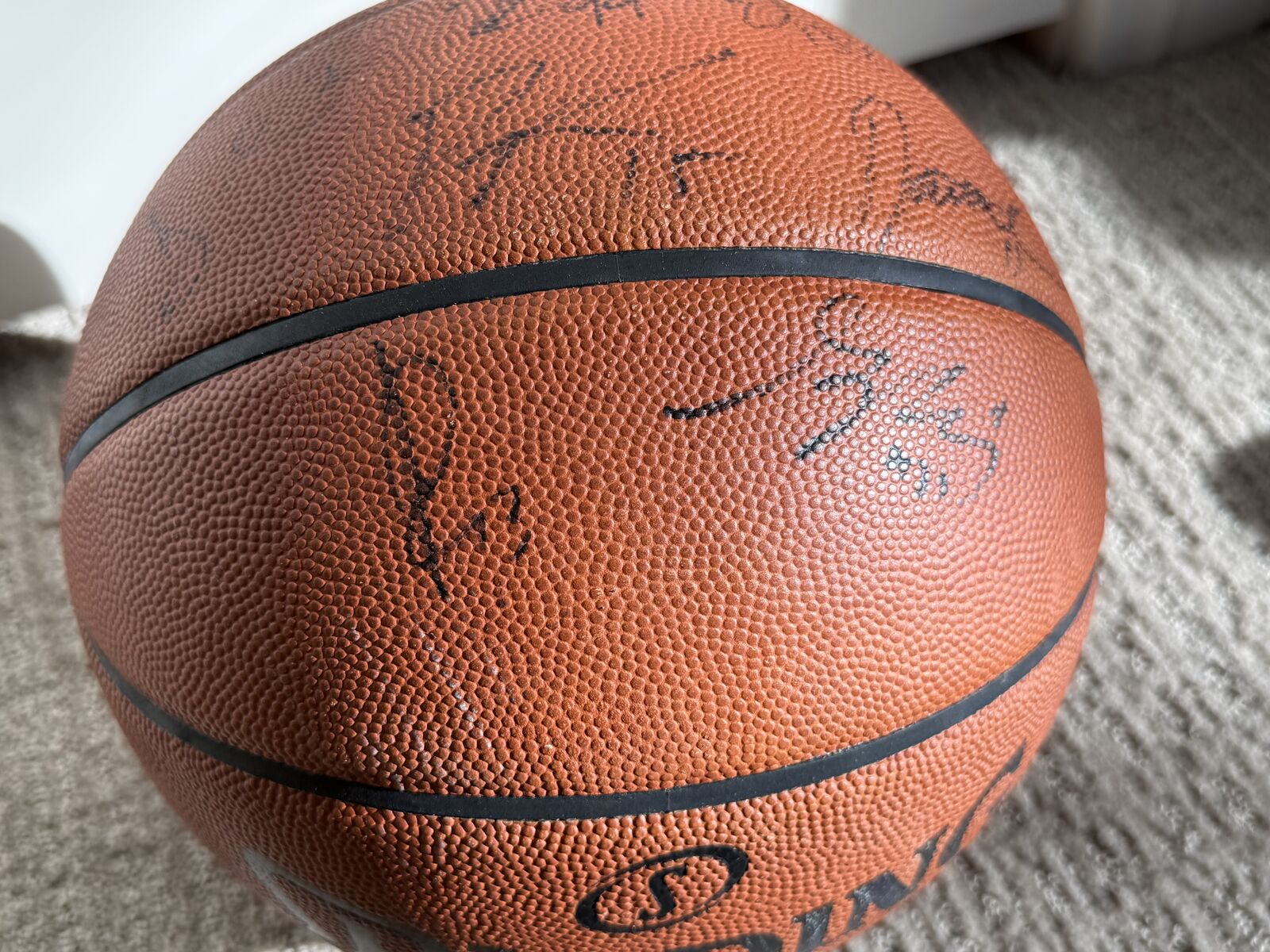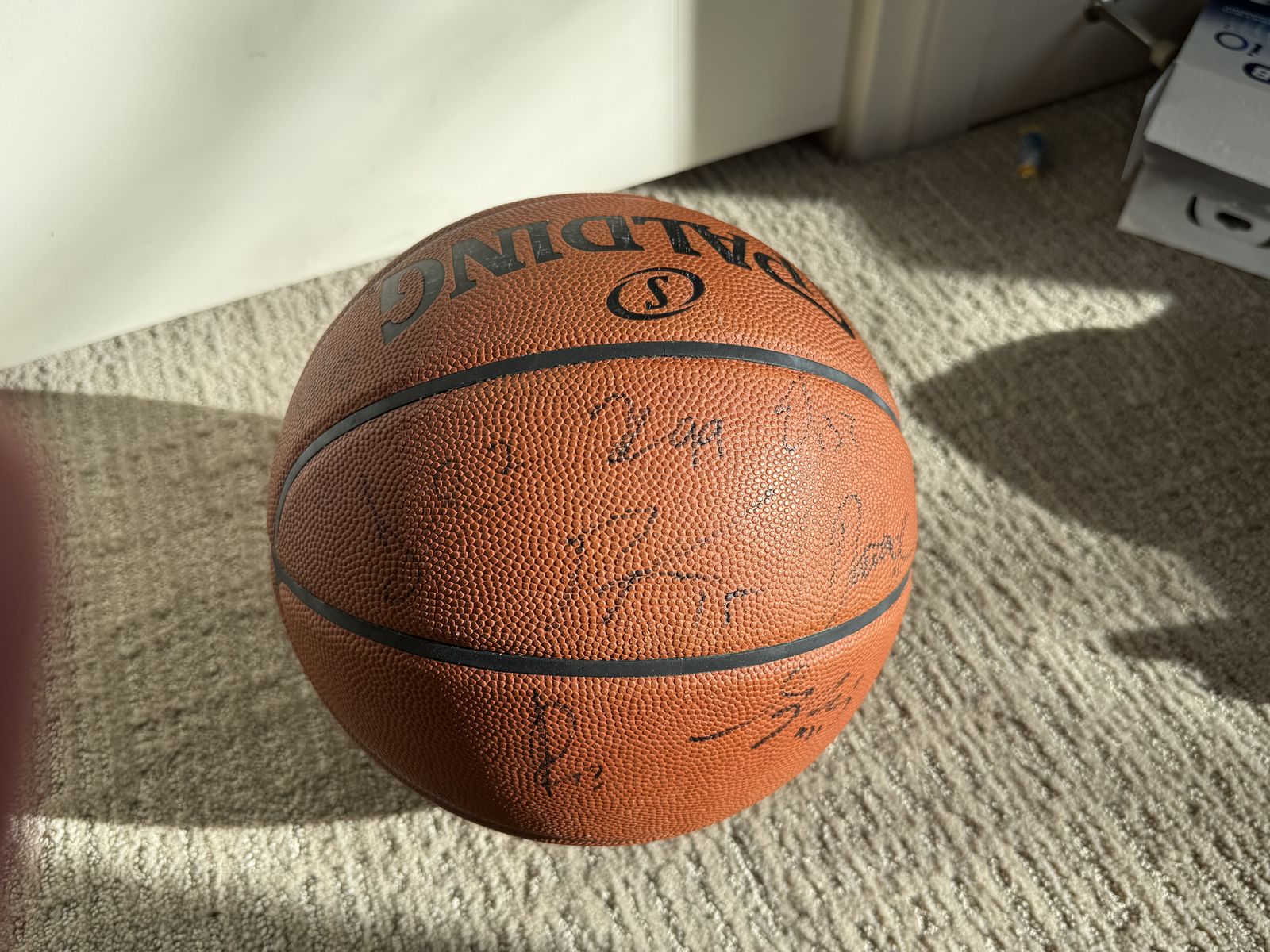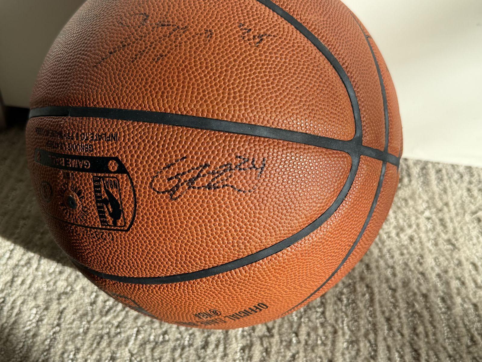This Utah Jazz basketball is signed by Rudy Gobert and Donovan Mitchell and it has many other big names and it is in pretty good condition but there’s a couple scratches on it and it is a rare fine that you can get for a good price