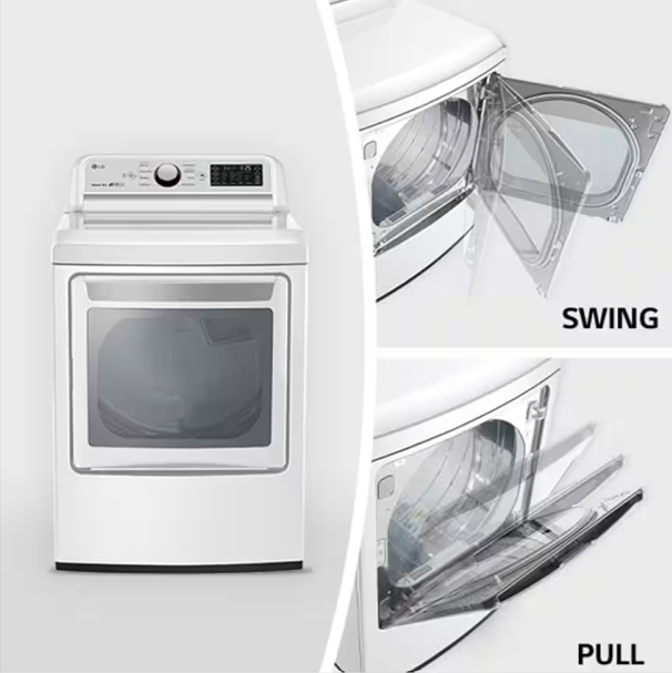 The LG DLG7301WE is a popular 7.3 cu. ft. smart gas dryer known for its large capacity, EasyLoad dual-opening door, Sensor Dry system, and ThinQ technology, often found in white with stainless steel drums for durability, offering features like remote monitoring and smart pairing with washers
