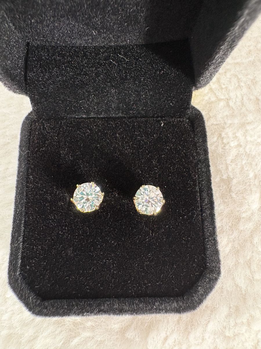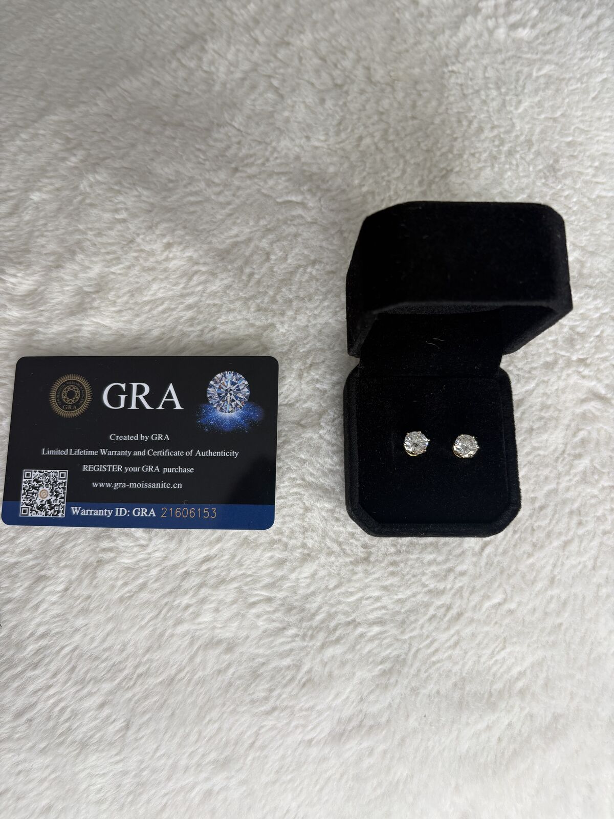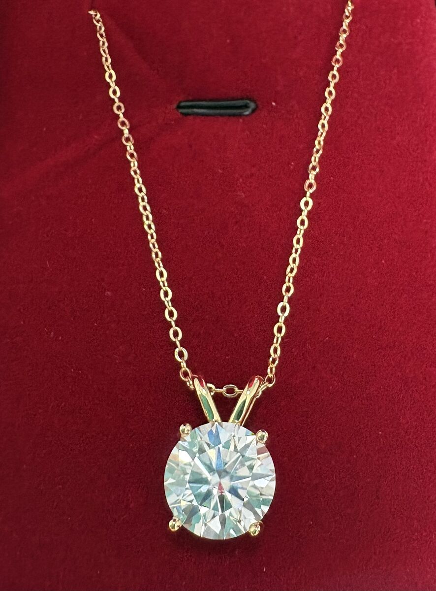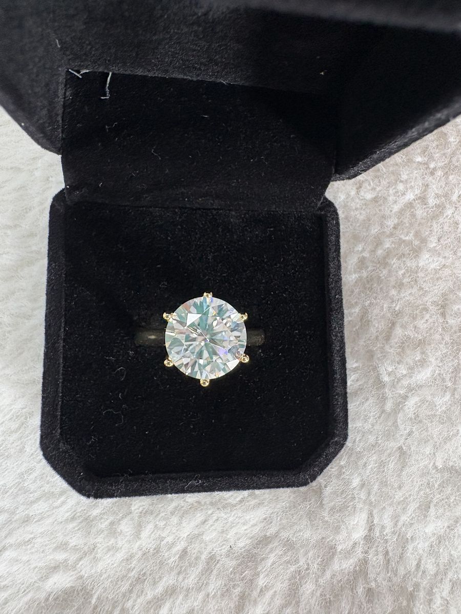 VenmoThis product is a vintage Moissanite 925 Sterling Silver solitaire ring pendant earring set. The set features a round white Moissanite main stone with a total carat weight of 12 ctw., set in sterling silver with a gold color. The ring size is 8 and the band width is 3mm. The design is handmade, with a prong setting style. Each piece has a GRA certification of authenticity. Perfect for occasions like anniversaries, Christmas, engagements, Mother's Day, and weddings, this set exudes beauty and elegance with its eye-clean gemstone clarity and very, very slightly included diamond color grade.