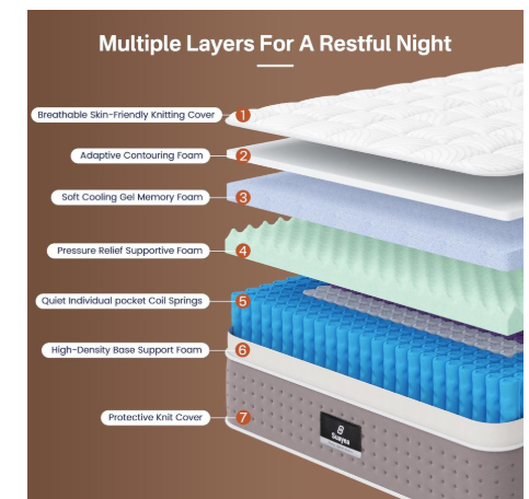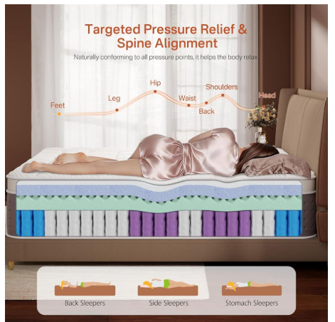 King Mattress, 14 Inch King Size Mattress in a Box, Firm Pocket Spring and Gel Memory Foam for Superior Comfort, Pressure Relief, Strong Edge Support