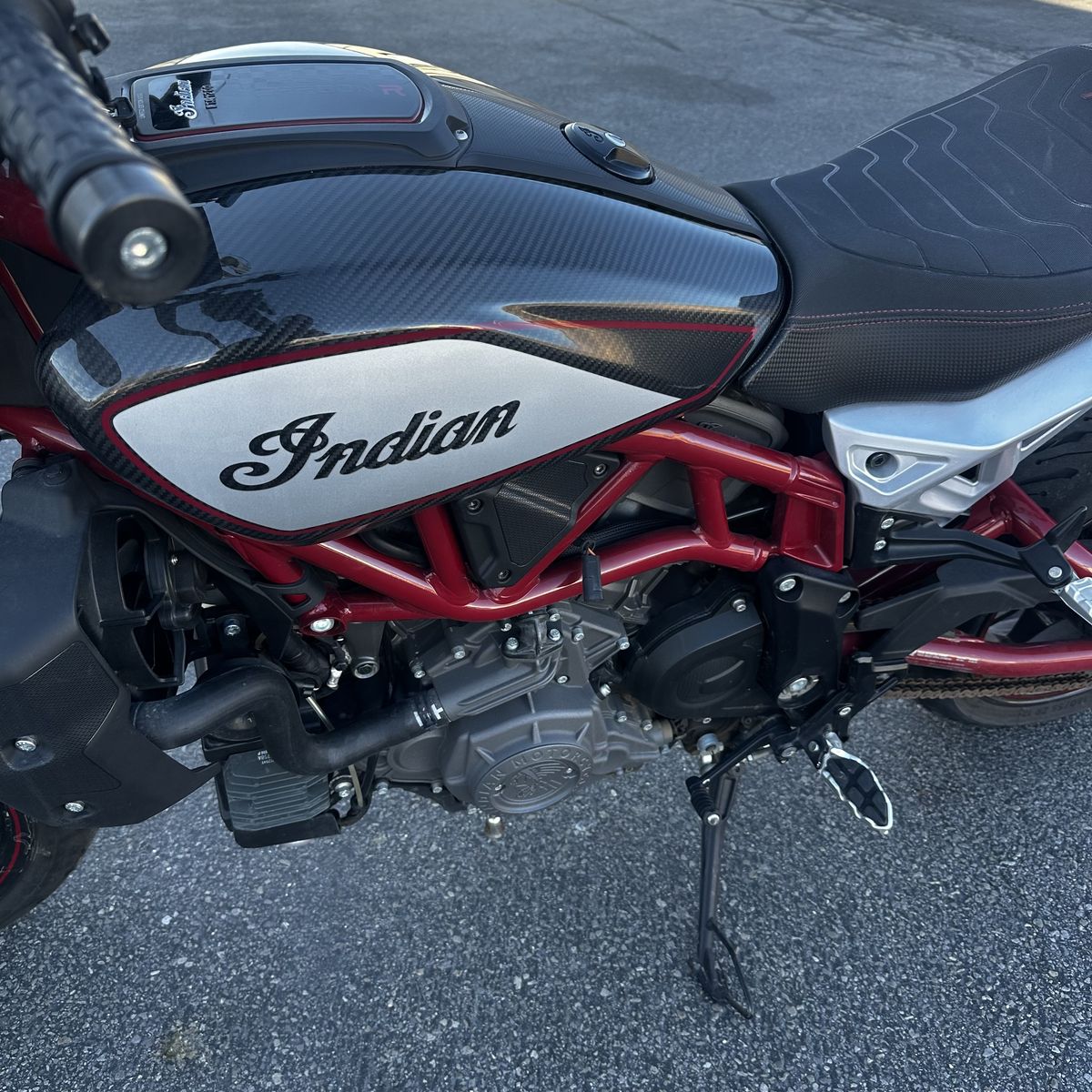 The 2022 Indian FTR R Carbon delivers aggressive performance from its 1200cc V-twin wrapped in lightweight carbon fiber bodywork. Fully adjustable Öhlins suspension and Brembo brakes give it sharp handling with serious stopping power. This one is running great with 7,900 miles and a clean title! A flat-track–inspired stance and premium components make it a standout naked sport bike built for riders who want raw performance with high-end style