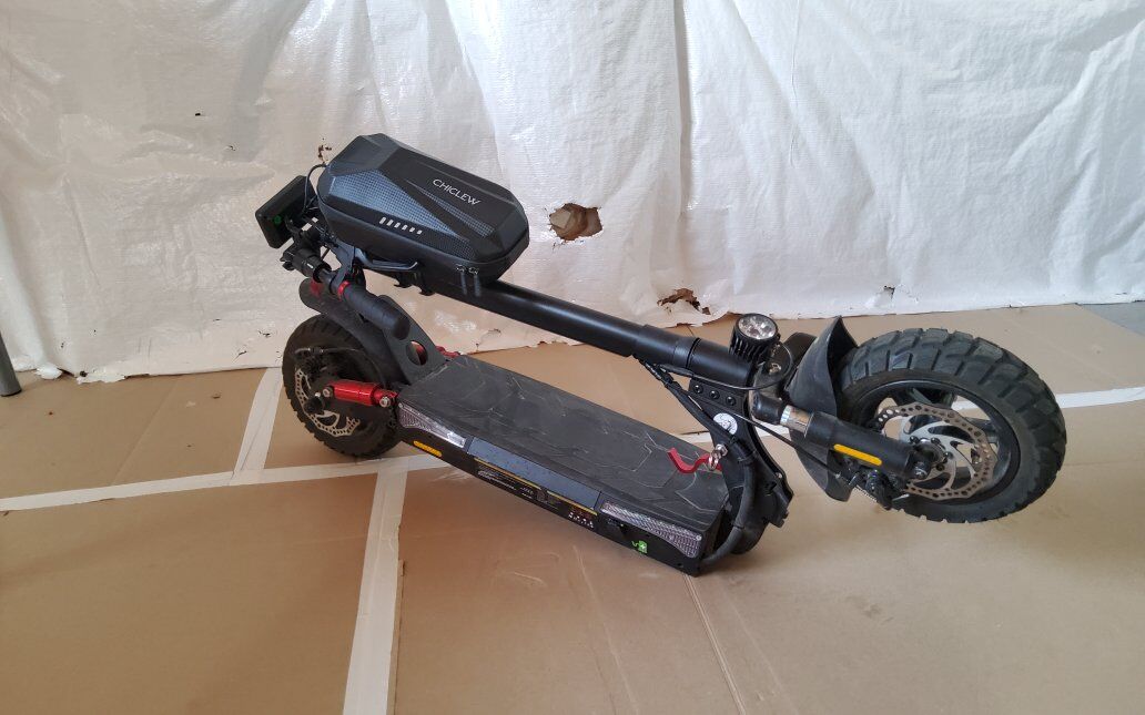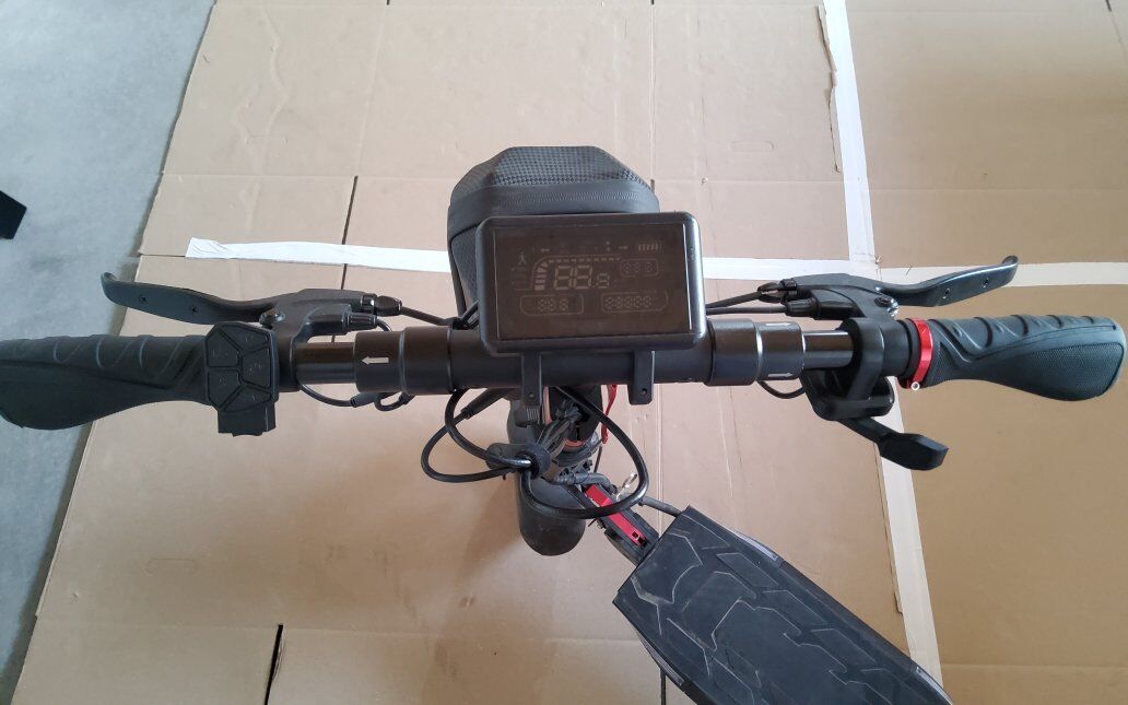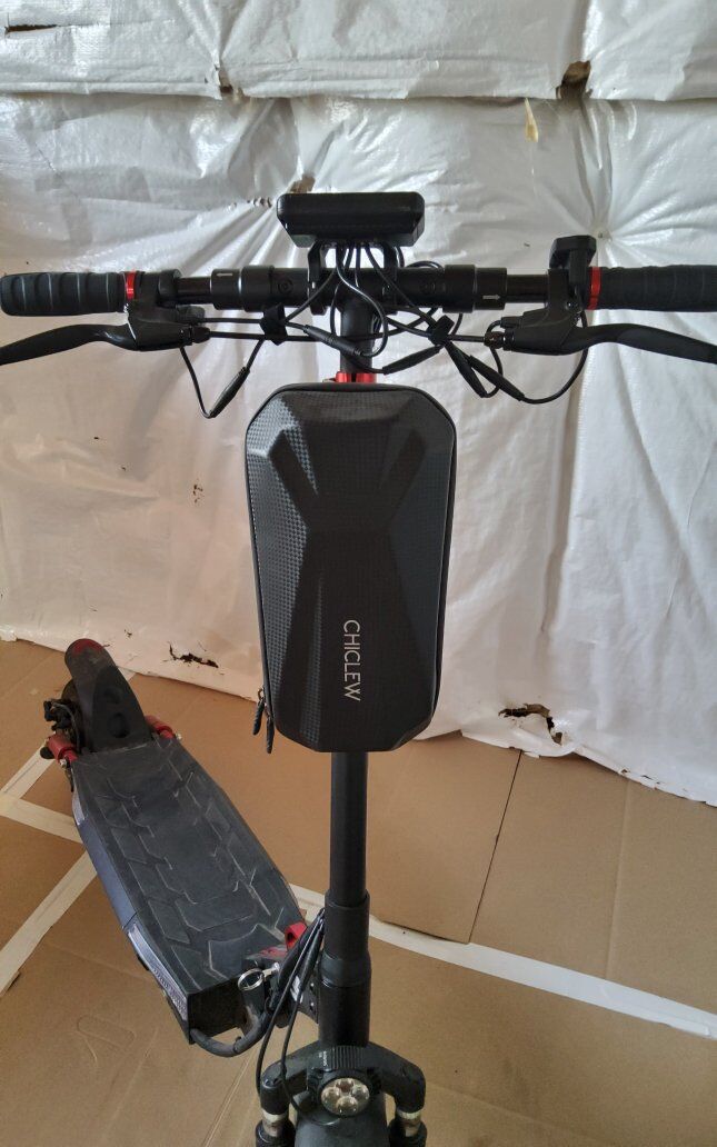 The scooter has adjustable handlebars, a headlight, brake light, and turn signals, plus a foldable design for easy storage and weight of 52 lbs. It comes with the bag as well as some extra tubes and only has 146 miles! $450 OBO No Trades