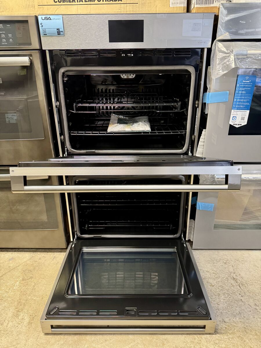Cafe Modern Glass Collection 30 Inch Double Convection Smart Electric Wall Oven with 10 Cu. Ft. Total Oven Capacity, True European Convection Oven, Self-Clean, Steam Clean Option, Scan-to-Cook, Keep Warm, Proof, Precision Cooking Modes, and UL Listed