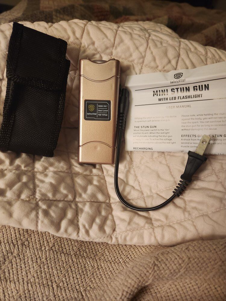 PayPalmini stun guns, flashlight comes with recharging cable. direction box and fabric belt clip.