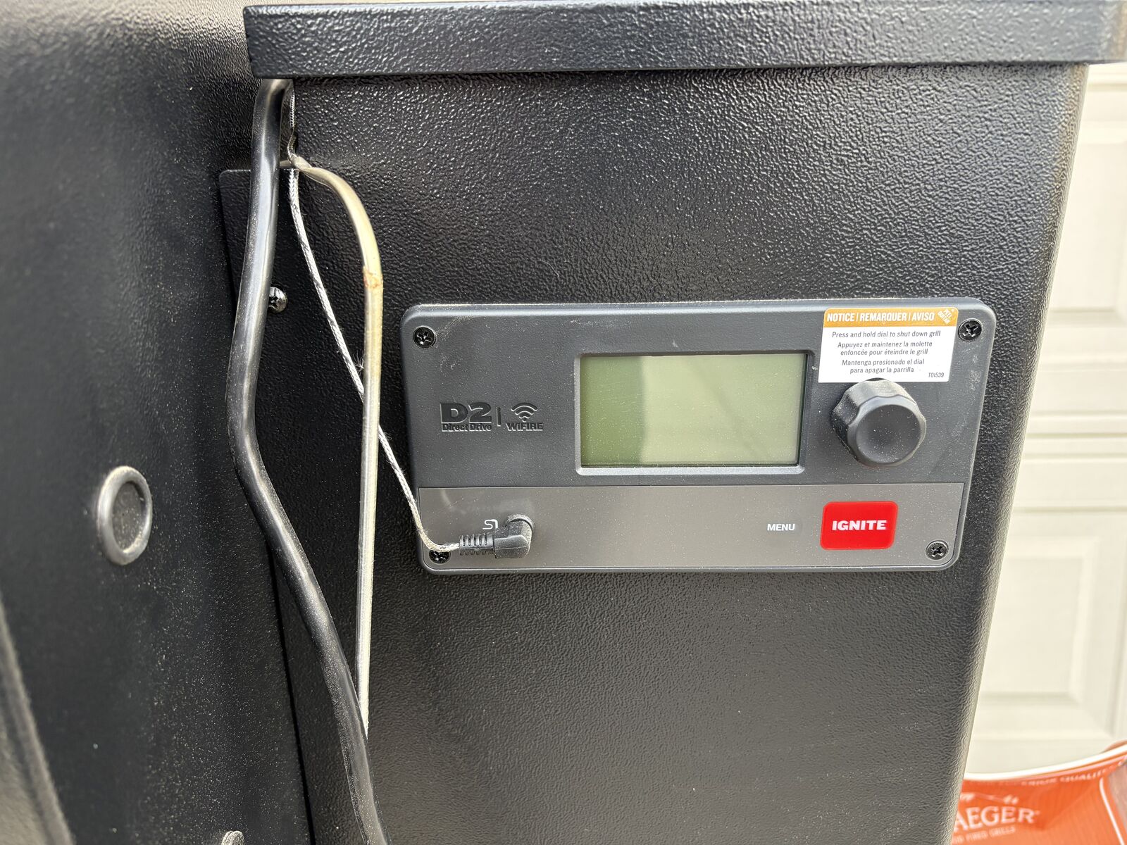 Included Meat Probe and All-Terrain Mobility: Monitor internal food temps without lifting the lid of your Traeger smoker grill using the integrated meat probe. Durable wheels and sawhorse chassis provide stability and portability for your outdoor grilling setup. Precision Temperature Control: The D2 direct drivetrain digital controller and brushless motor ensure consistent heat across the cooking chamber of this pellet grill. Designed to handle low-and-slow BBQ and up to 500°F high-heat searing