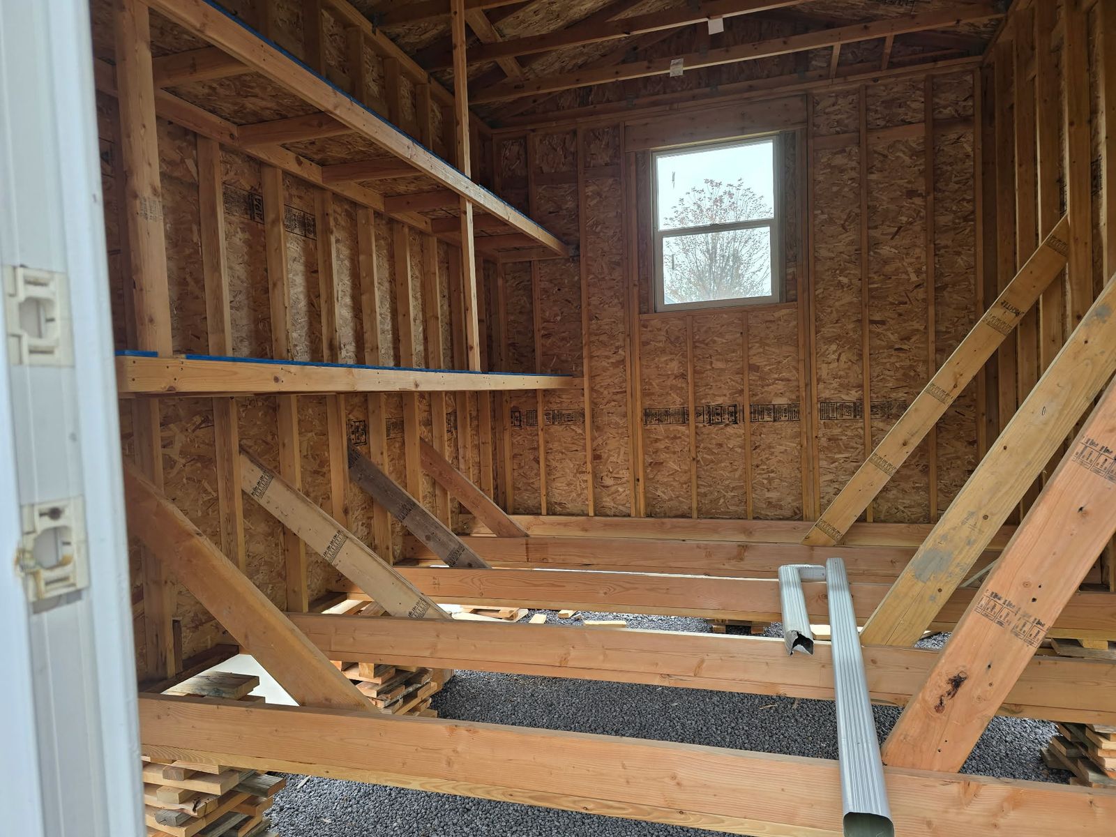 VenmoStick frame hand built for a concrete slab. Dimensions: 12' wide, 18' deep, 10' walls, 6' french doors.