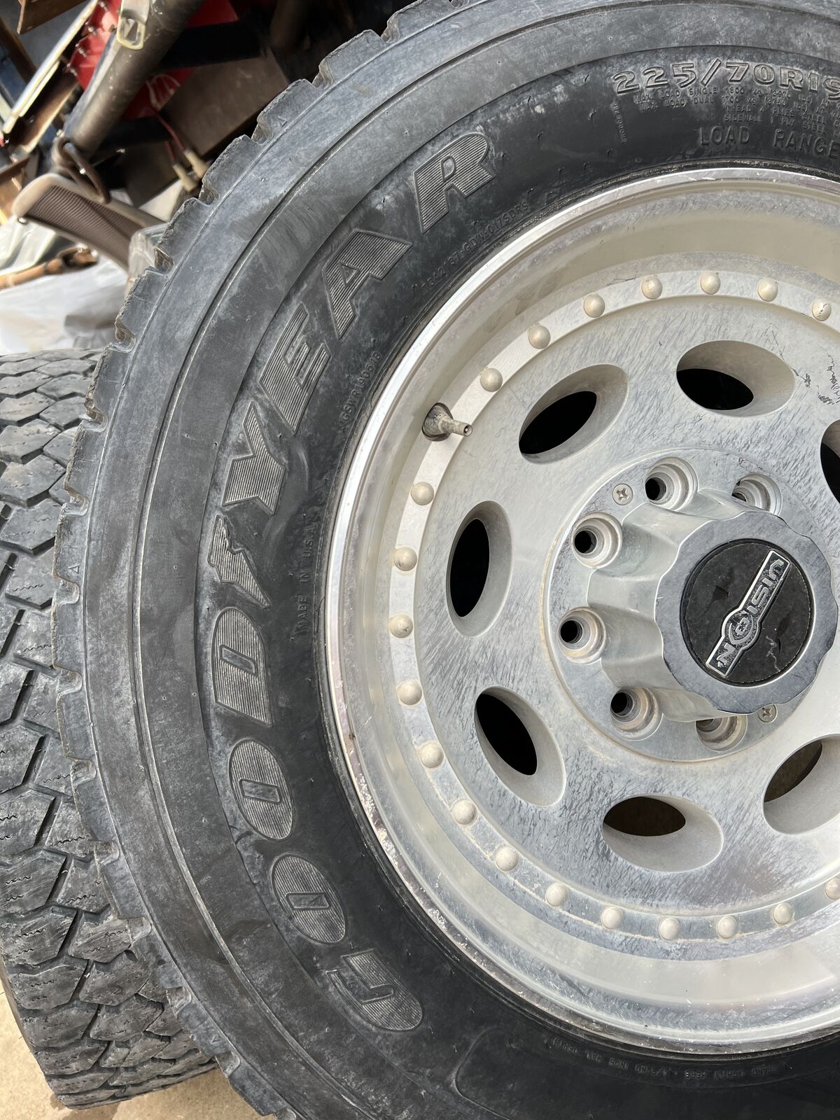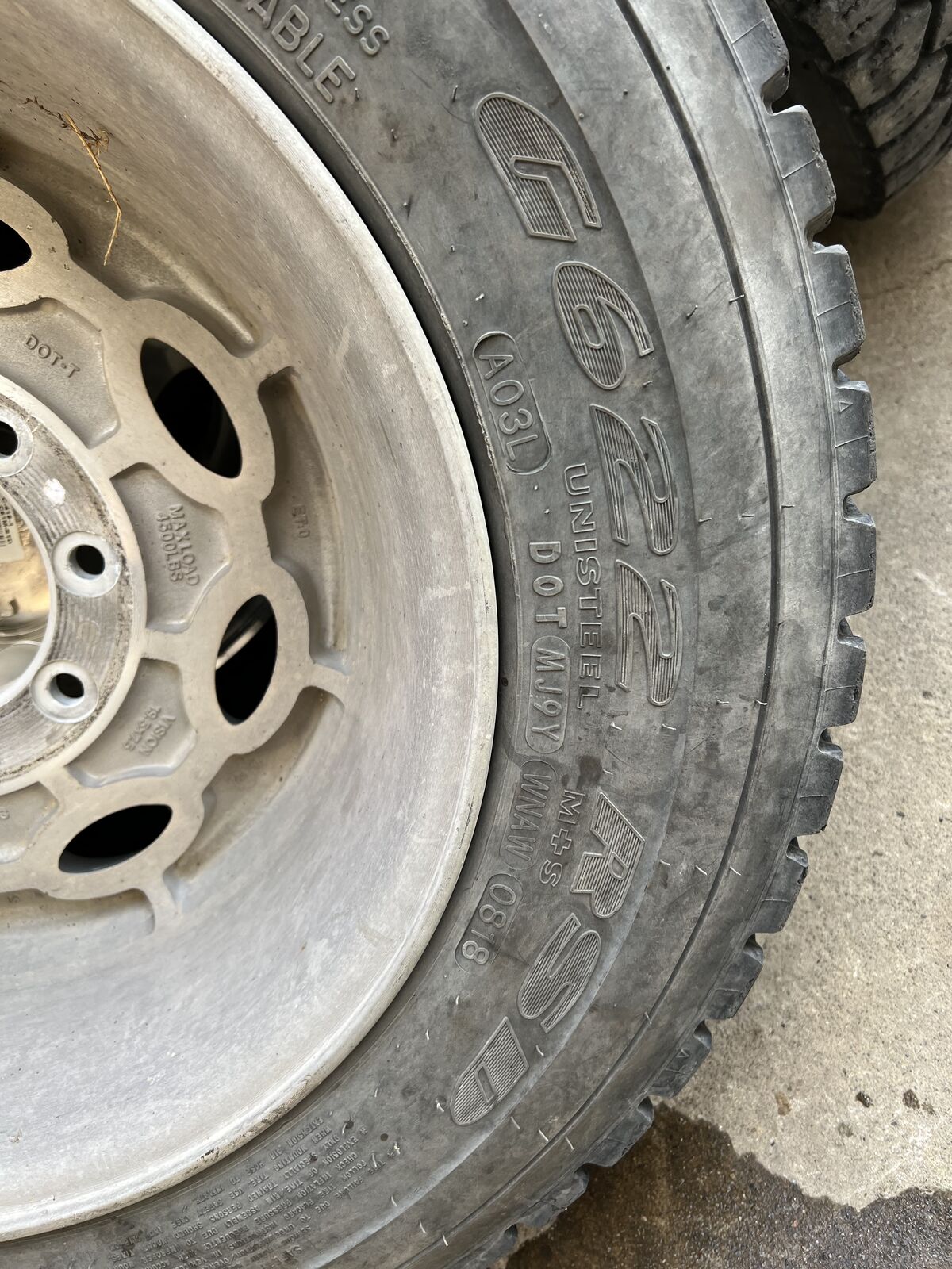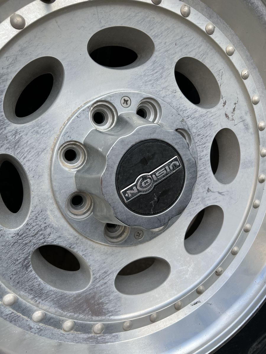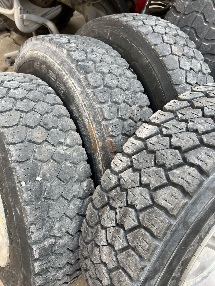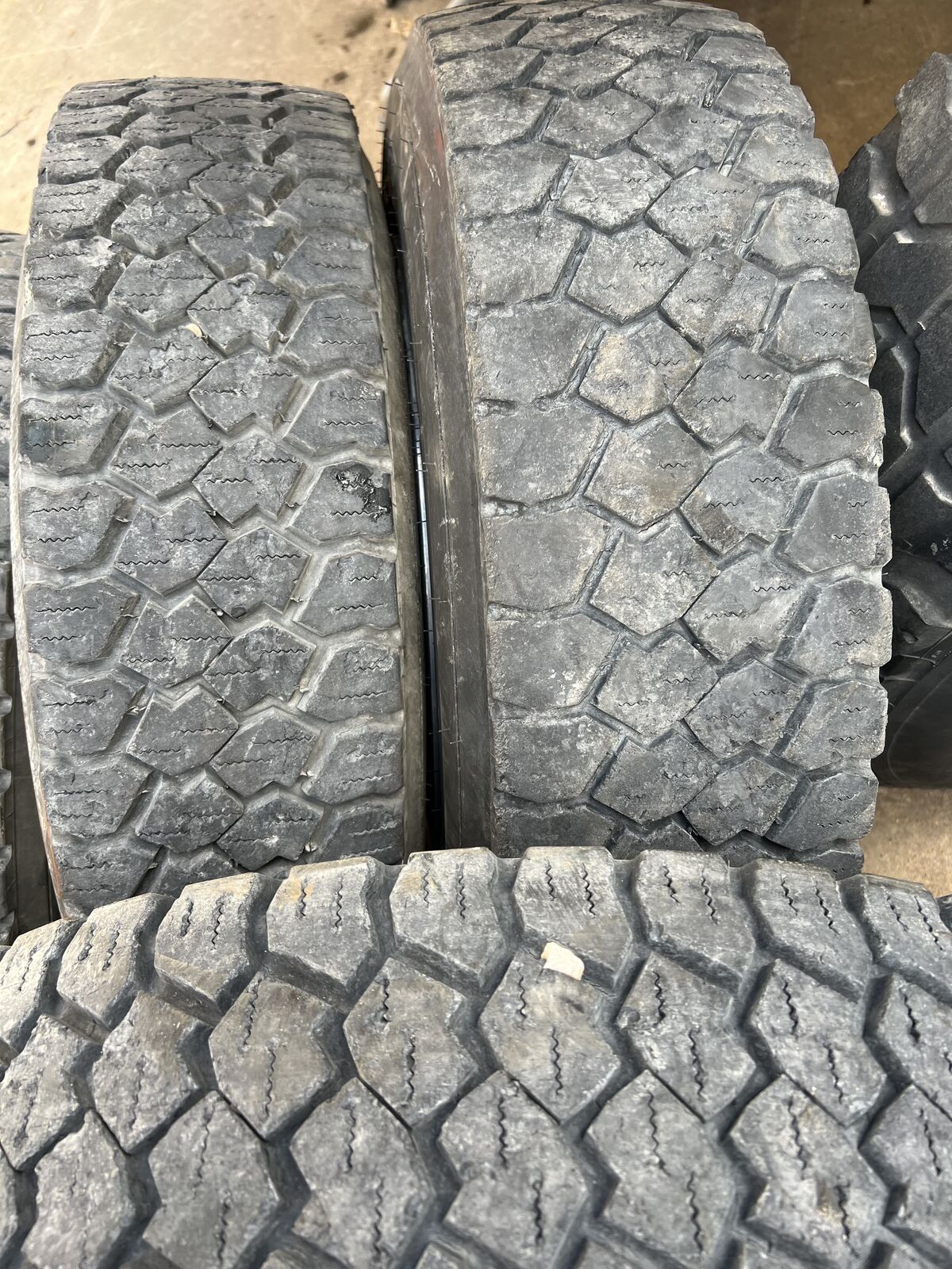 19.5x7.5 vision wheels with center caps 8 lug - 8x6.5 / 8x165 Goodyear 225/70/19.5 G622 RSD Regrovable tires with great tread. One has more outside wear from a bad alignment. Removed from a Chevy 2500HD, could use a polish but in good shape. Will also fit dodge and old ford
