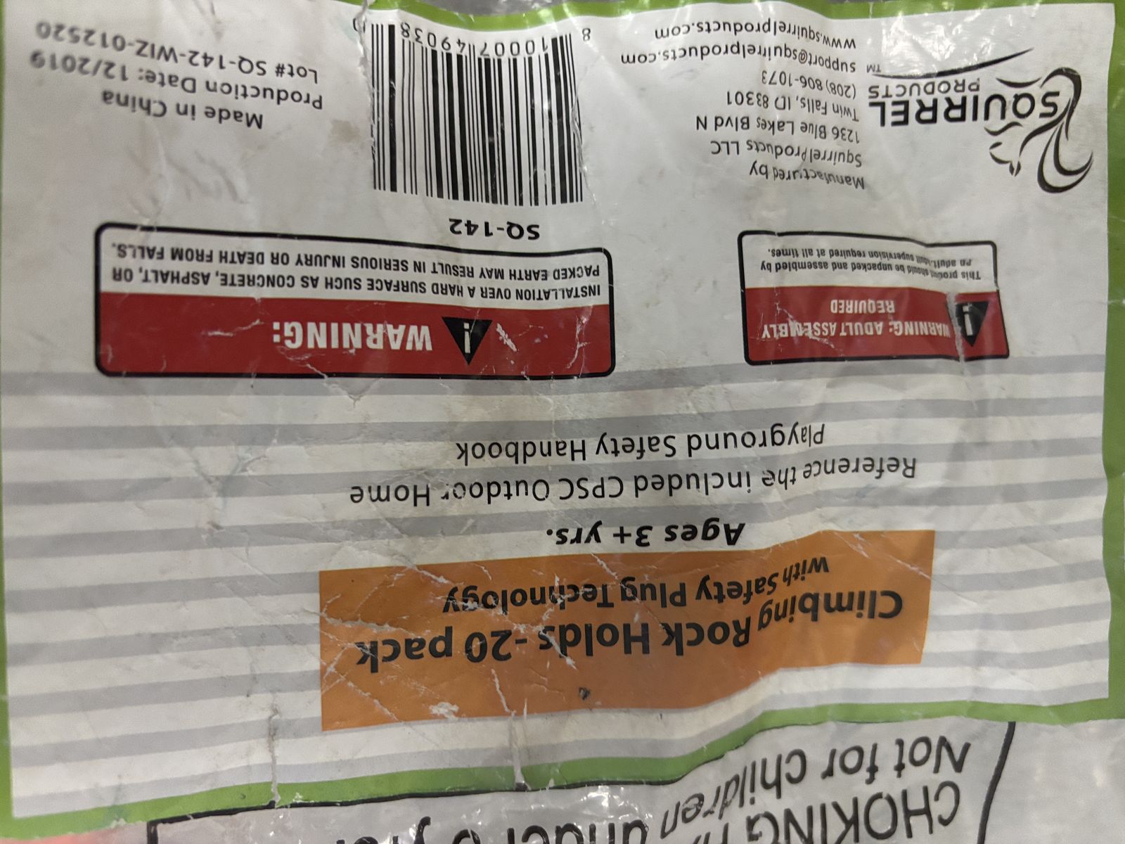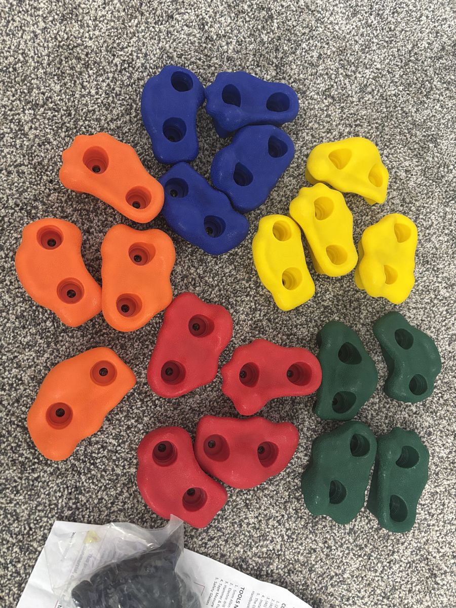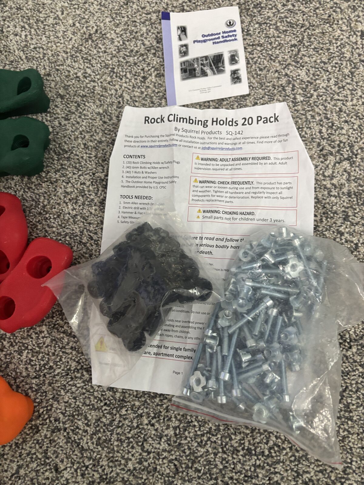 This is a package of 20 new # Rock Climbing Holds for Kids with Safety Plug Technokogy by Spuirrel Products