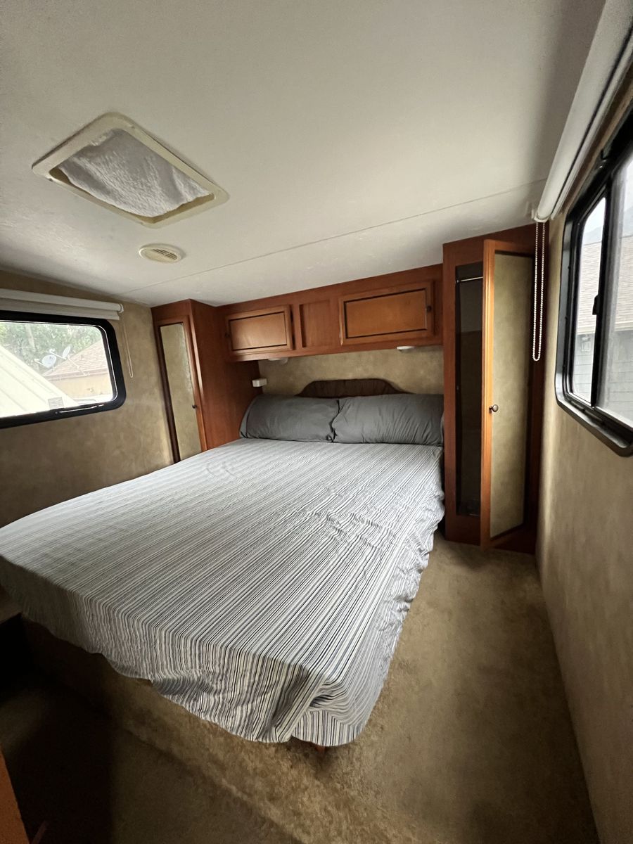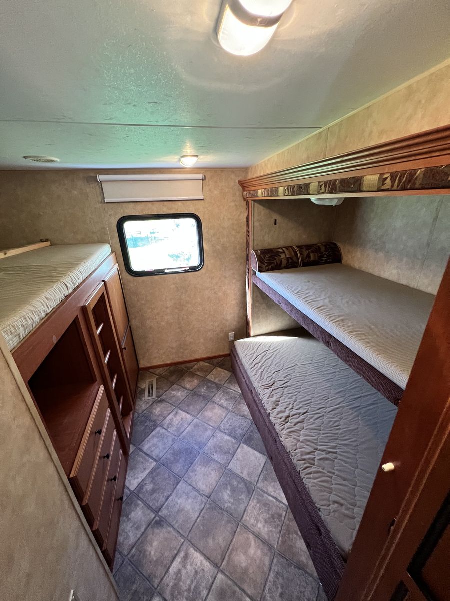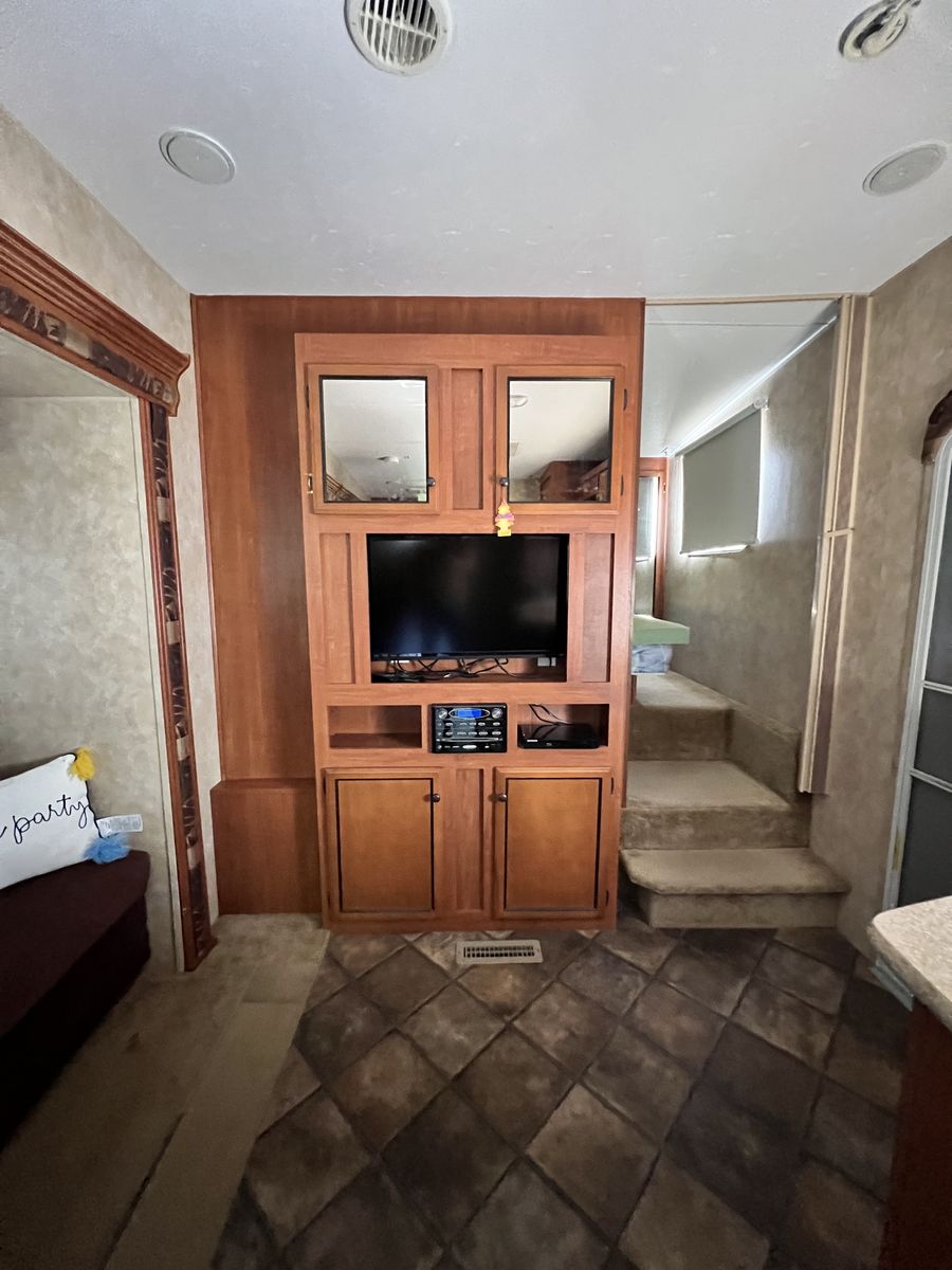 We have LOVED having this trailer. We so bought it from the original owner 4 years ago. Everything works as it should. • tons of storage • 2 new batteries • 5 Beds plus the table and couch beds • Rear hitch for towing • Outdoor Shower • 2 power slides • Big Power awning