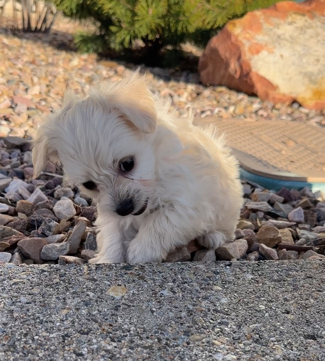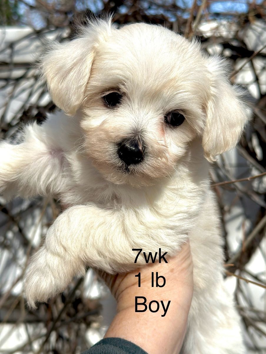 Parent Info Mom: 8 1/2lb white Maltipoo. Dad: 7 lb AKC Matese.