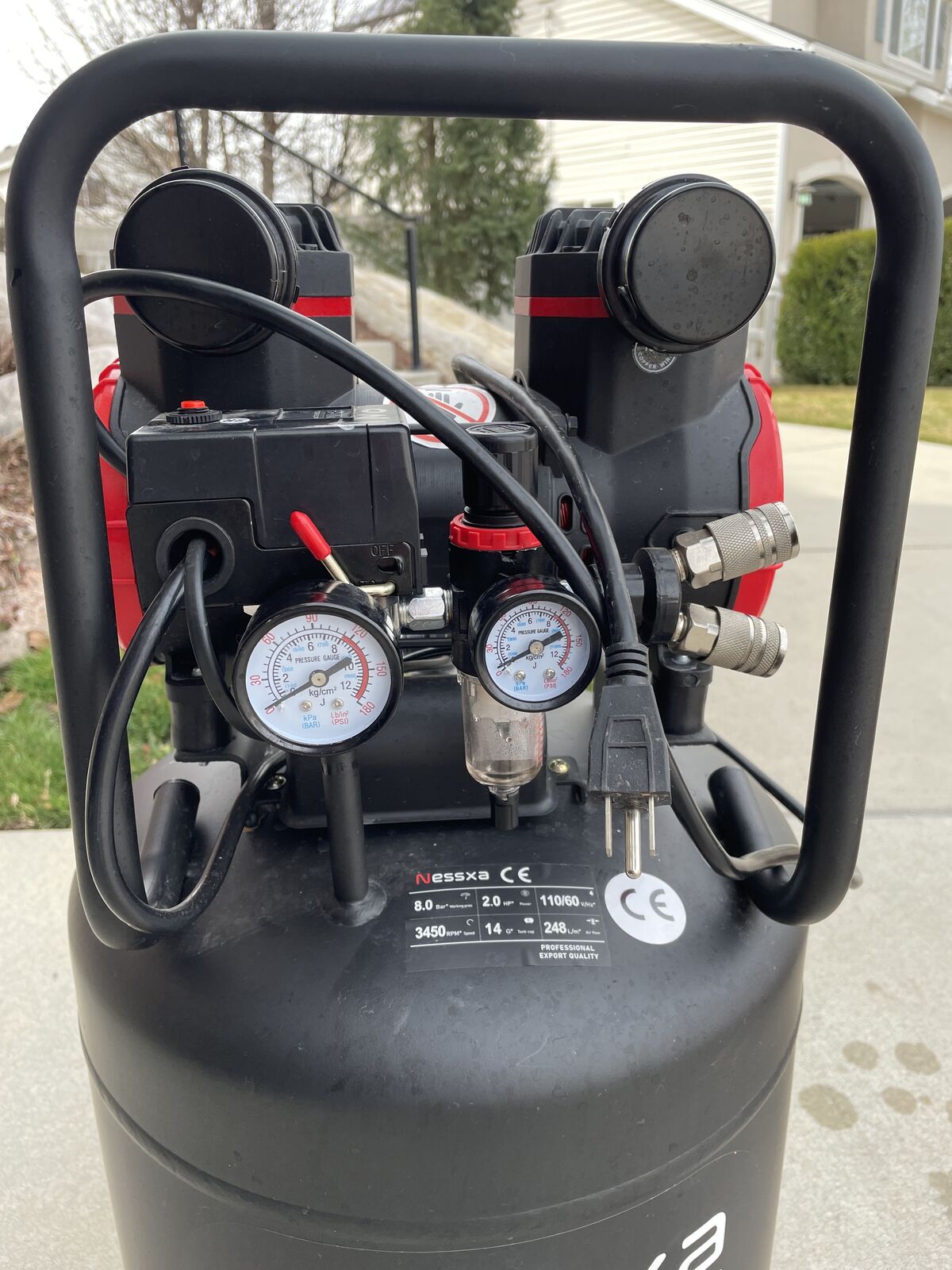 14 Gallon Ultra Quiet Air Compressor with 2 Quick Couplers 2HP 8.75 CFM, Max 115 PSI Pressure Oil-Free Air Compressor Tank, 70dB Quiet Compressor for Auto Repair, Tire Inflation 110V/60hz Cash only Please