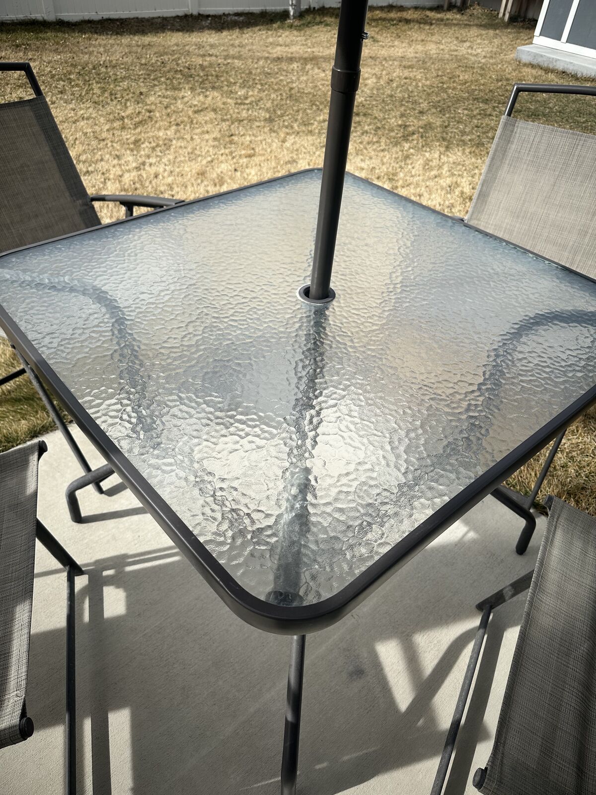 Comes with 4 chairs table and umbrella. Near perfect shape.