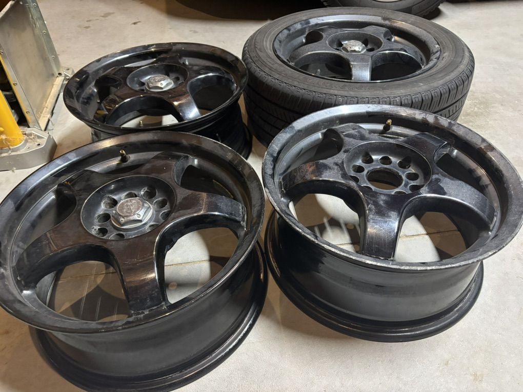 PayPal7” bead to bead inner width. 5x100mm lug pattern. 1 wheel is missing the cap.