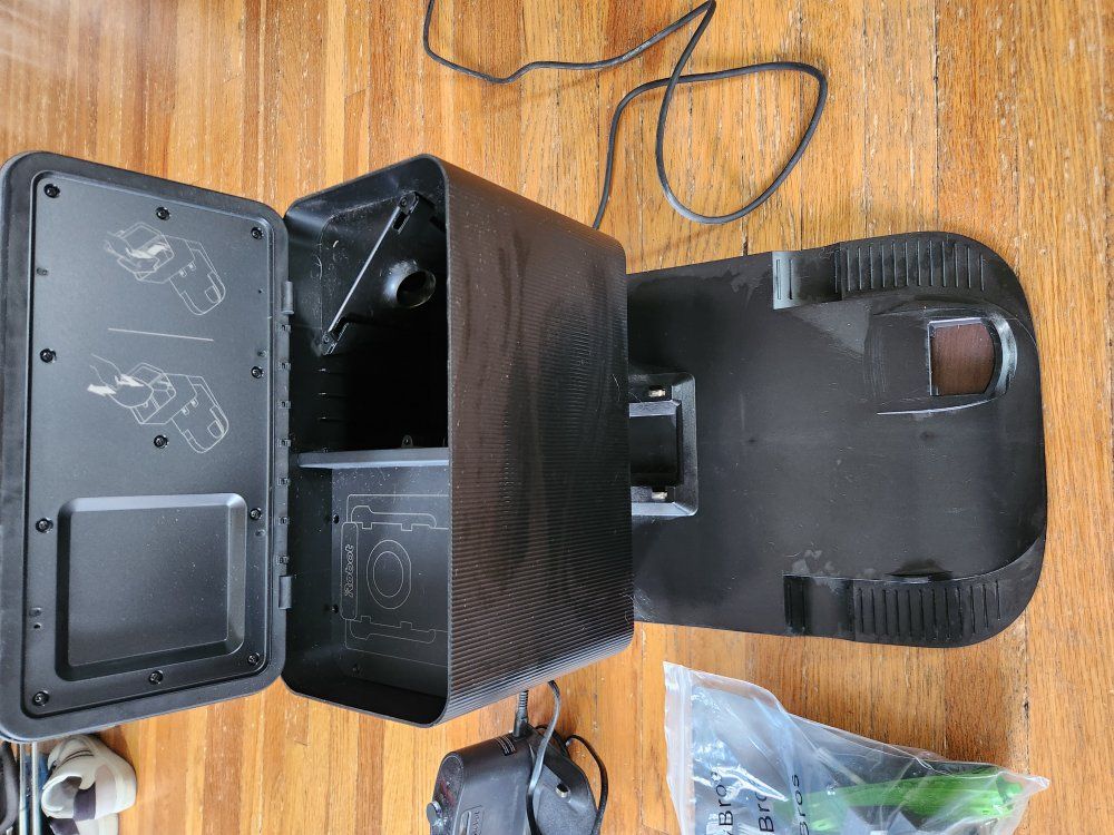 irobot clean base (model ADJ-N1). works great. comes with 9 new vacuum bags, 7 roomba filters and replacement brushes