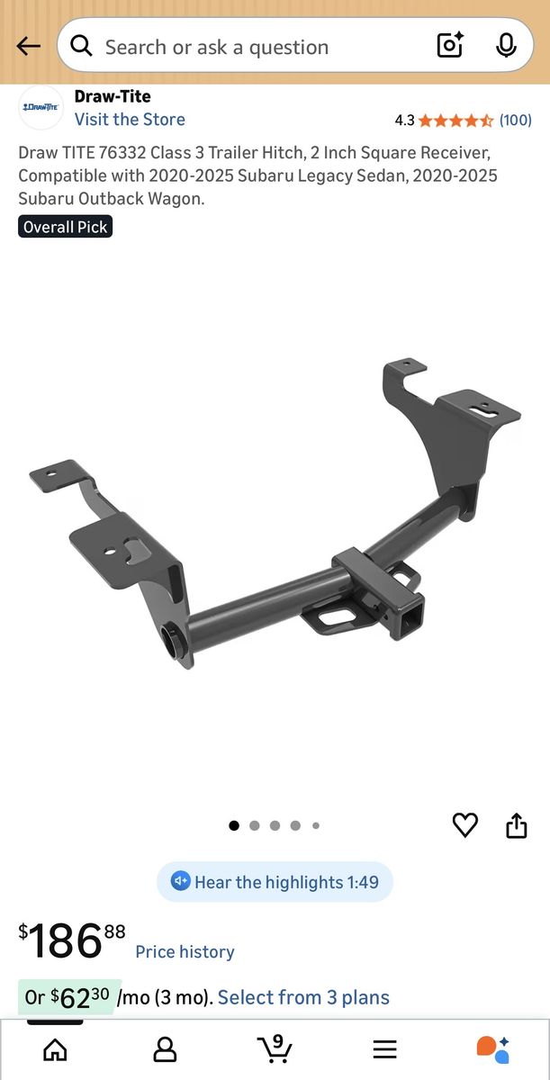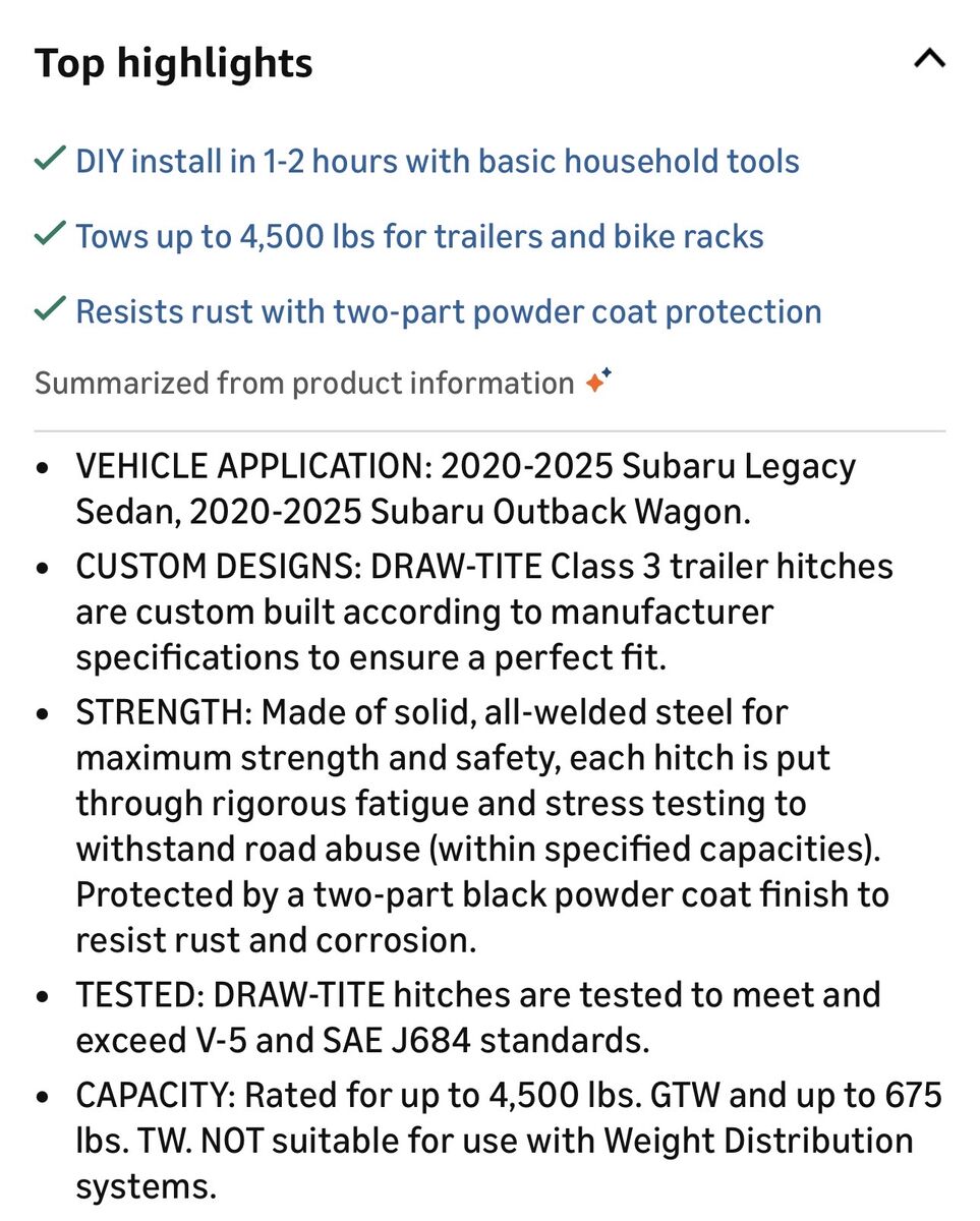 Description- Black powder coated steel tube Max Frame 2” receiver for 2020-2025 Subaru Outback wagon/Legacy sedan. Comes complete with installation hardware. See photos for more product information and specifications.