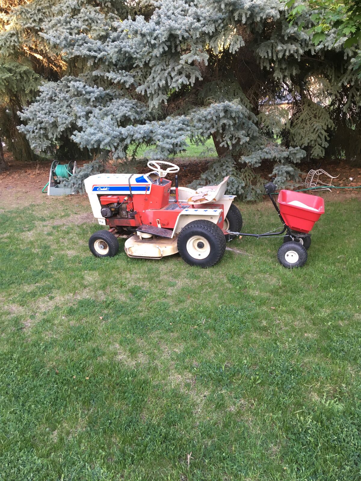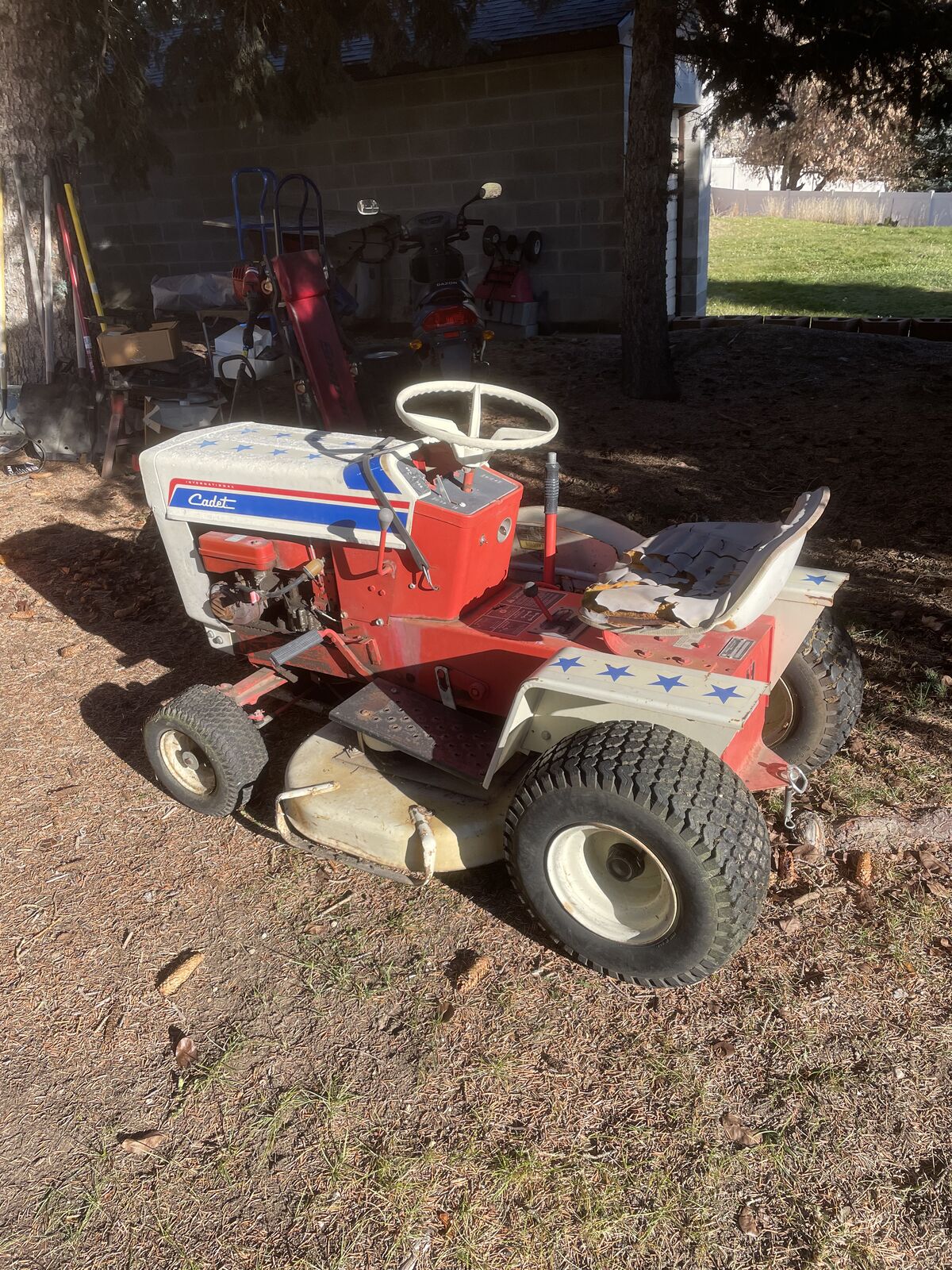1976 Cub Cadet Spirit of 76. Needs normal care, maintenance. Needs battery and throttle cable. Nothing else comes with it. Has typical hood damage.