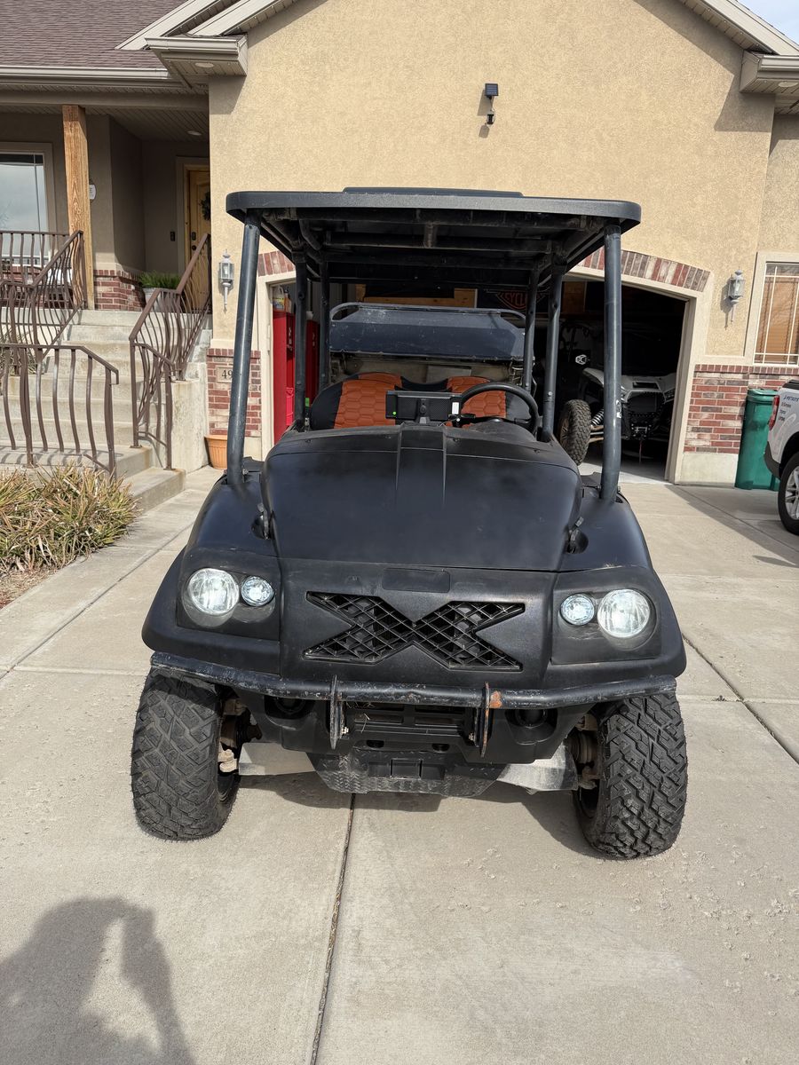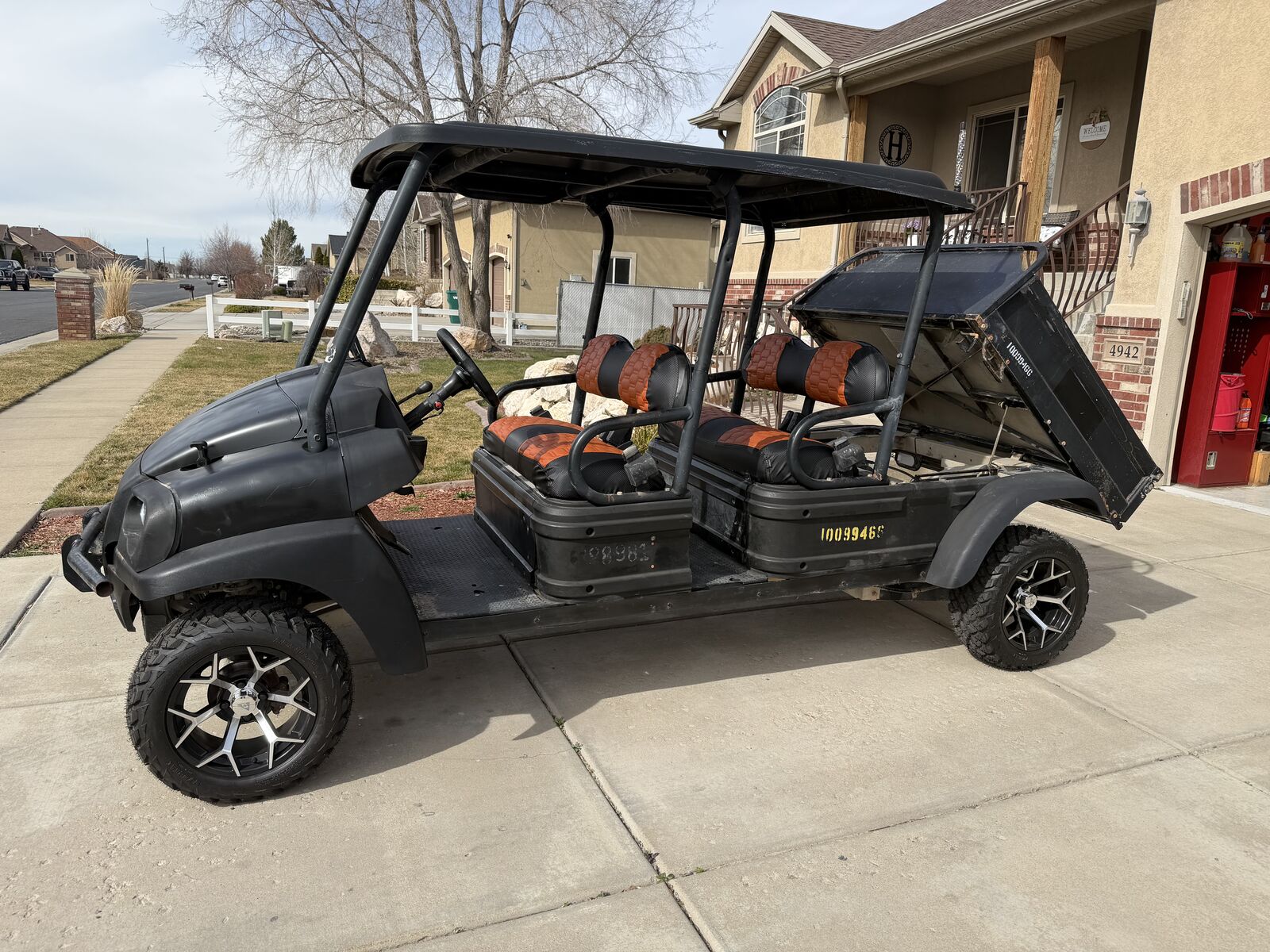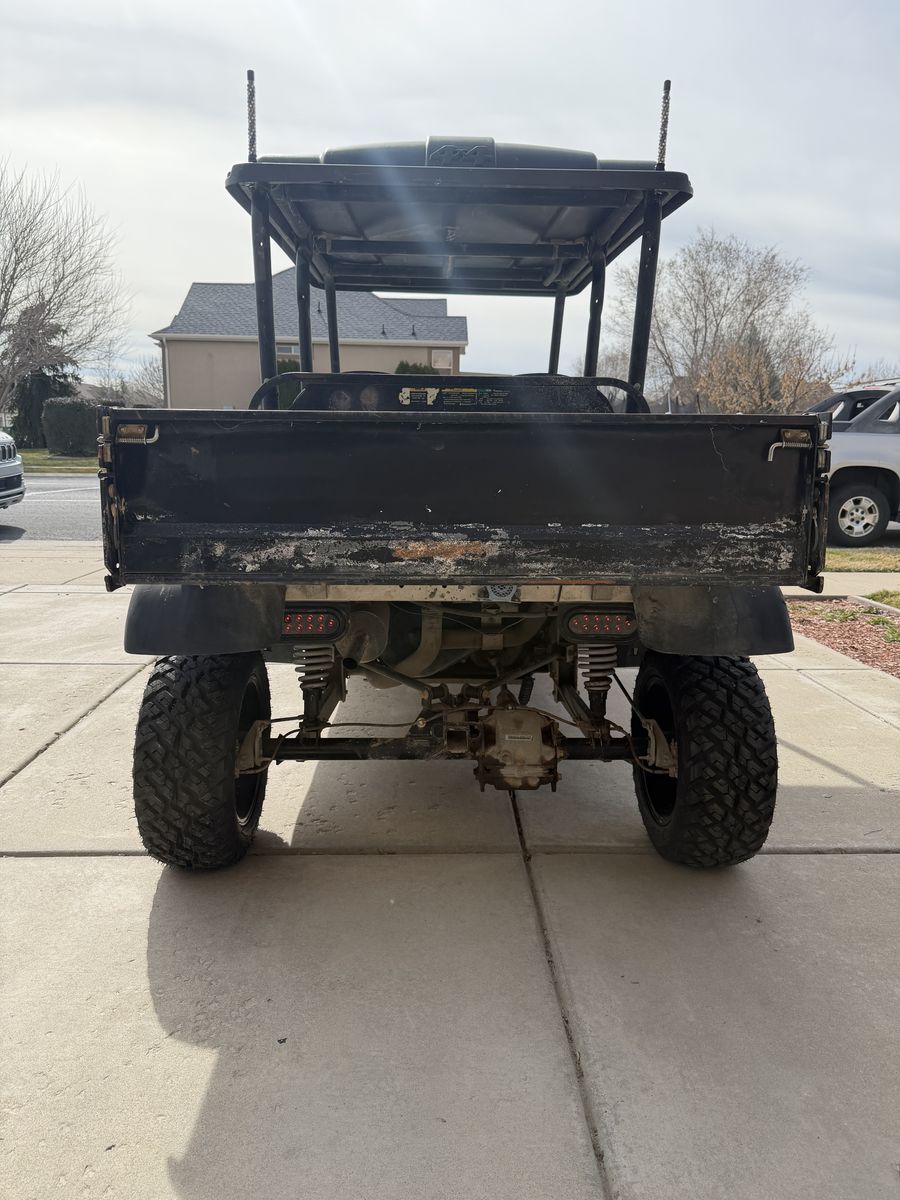 This 2014 club car has a dump bed. New lights been fully serviced. New seat covers new tires and wheels. The motor is a Kabota three cylinder diesel motor has a new belt runs great does 25 miles an hour. it also has four-wheel-drive. has new LED headlights new battery. these are rare to come by and hard to find.