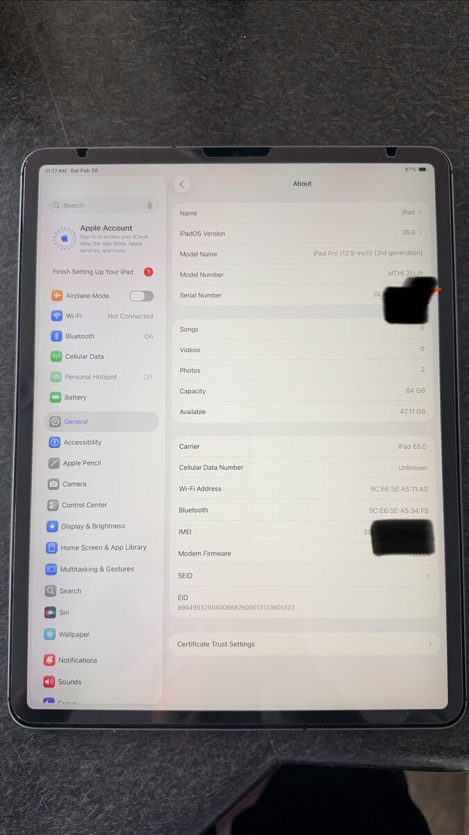 ZelleGray iPad Pro 3 generation 12.9” 64gb wifi+cellular everything working great never had any issues. The iPad has screen protector perfect condition no scratches. If you interesting please text me. No shipping Pick up only