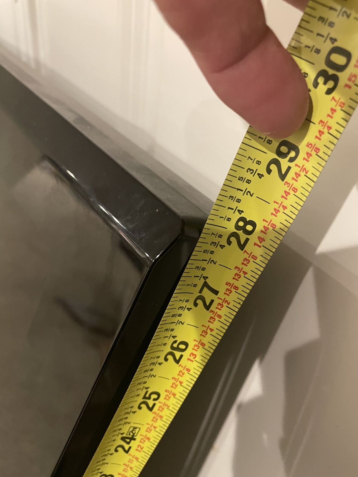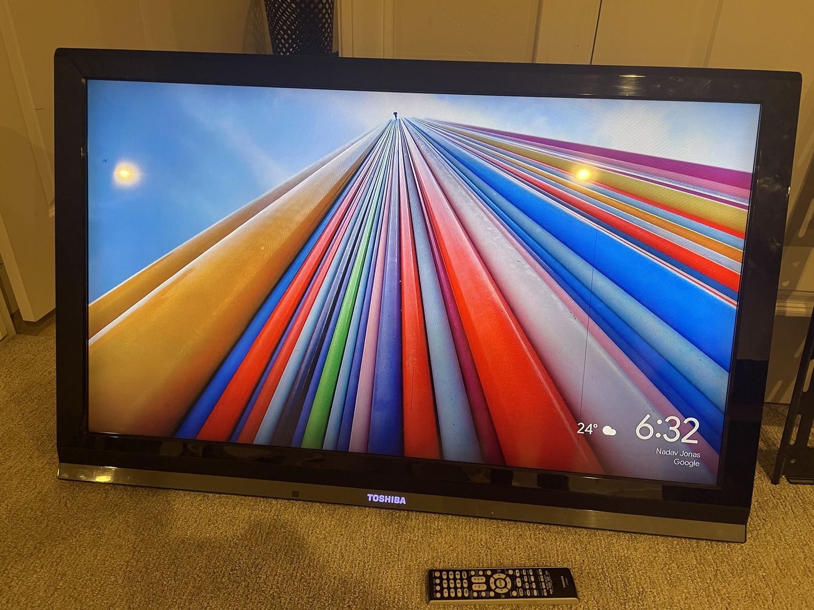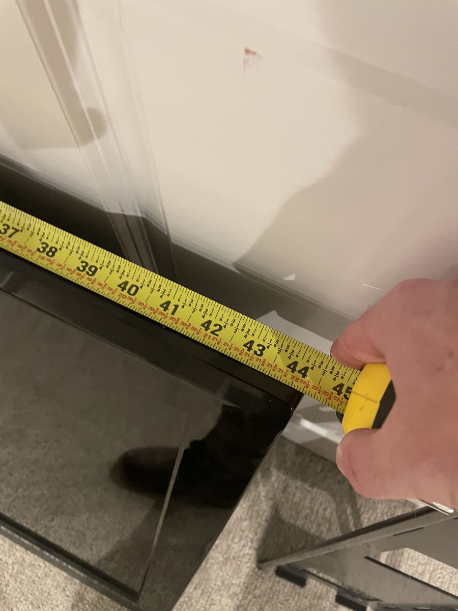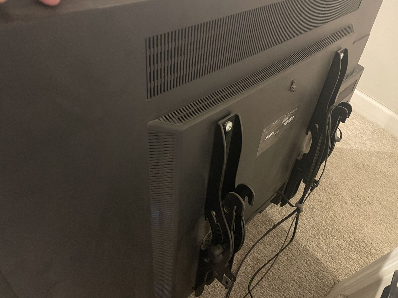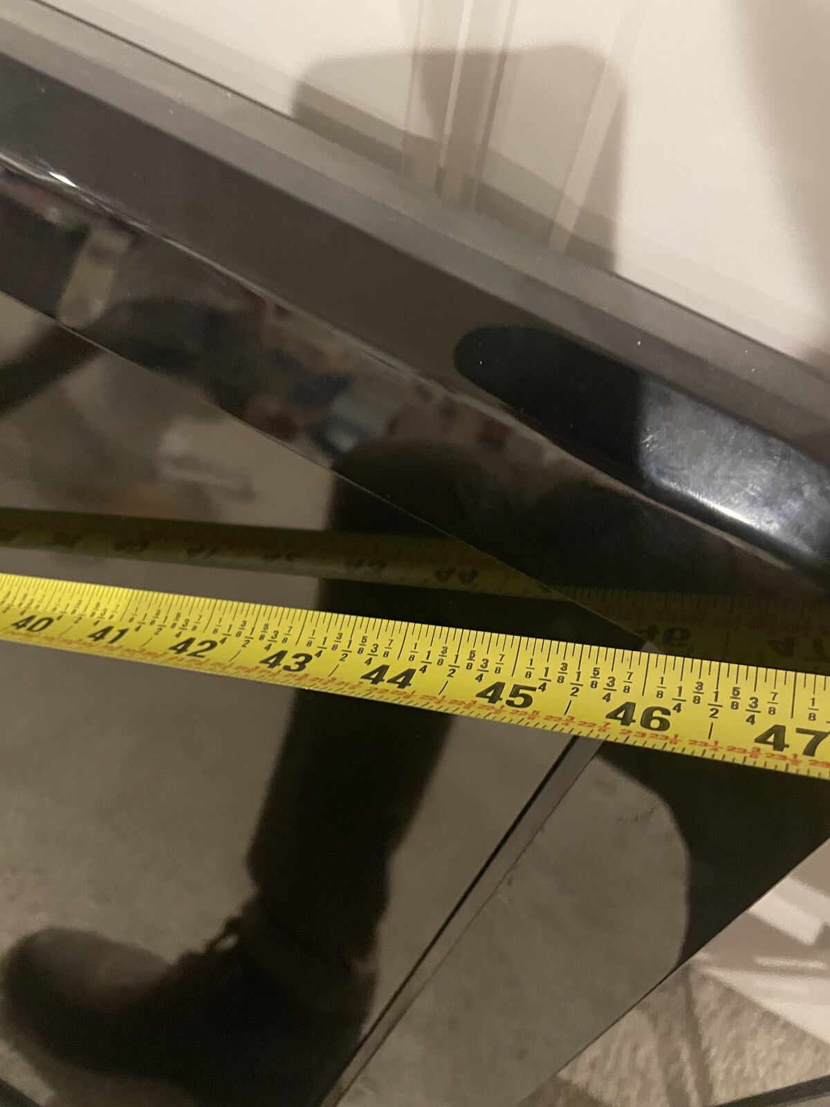 Venmo46 inch flatscreen TV with tilt mount for the wall. See pictures for full dimensions. Core with Chromecast. It has a small vertical line in the picture - see pics.