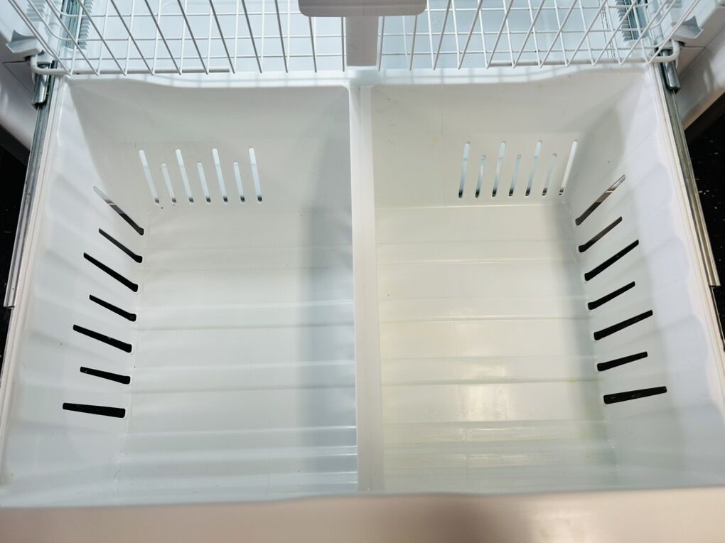 Whirlpool stainless steel french 4 door refrigerator with water and ice maker/dispenser 25 cu ft measured fill adjustable glass shelves crispers gallon size door bins large pantry drawer etc..It works great, clean, 45 day warranty, delivery/install available. W 35 3/4” D 31 1/4” H 68 3/8”