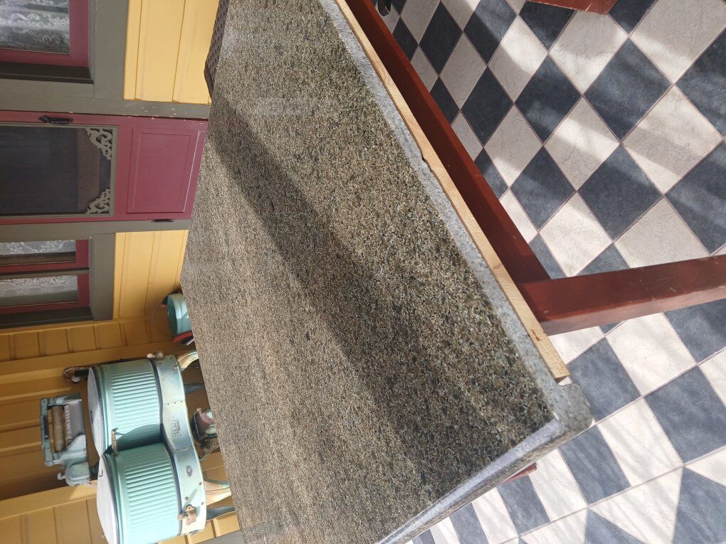 Granite top, edge rounded on three sides. One side is flat for against the wall placement. Or use the top for something else. 35.5x41. CASH ONLY