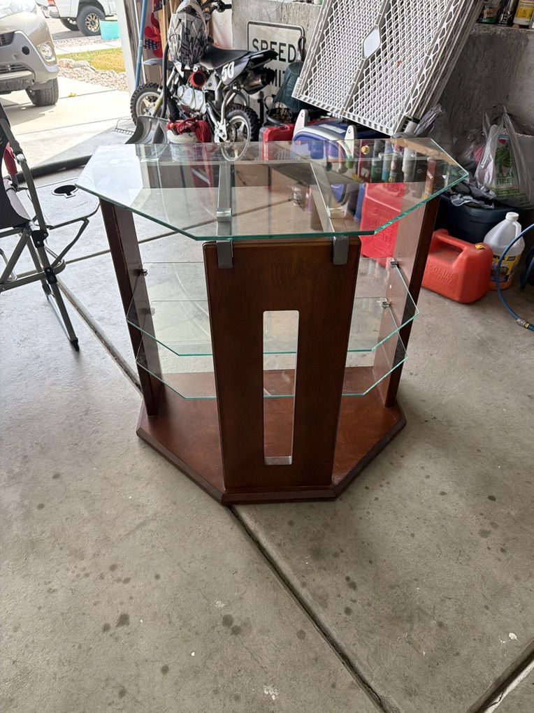 Stand with 2 adjustable glass shelves need gone will take a good offer