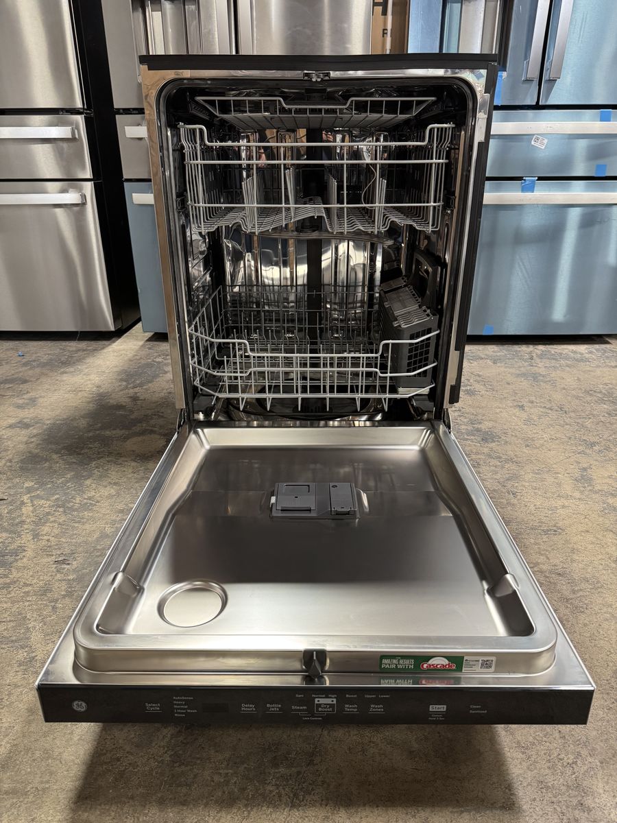 Ge 24 Inch Fully Integrated Dishwasher with 16 Place Settings, 3-Level Wash, Dry Boost™ Technology, Piranha Hard Food Disposer, Third Rack, Silverware Jets, Child Lock, Stainless Steel Interior, Sabbath Mode and ENERGY STAR® Qualified: White