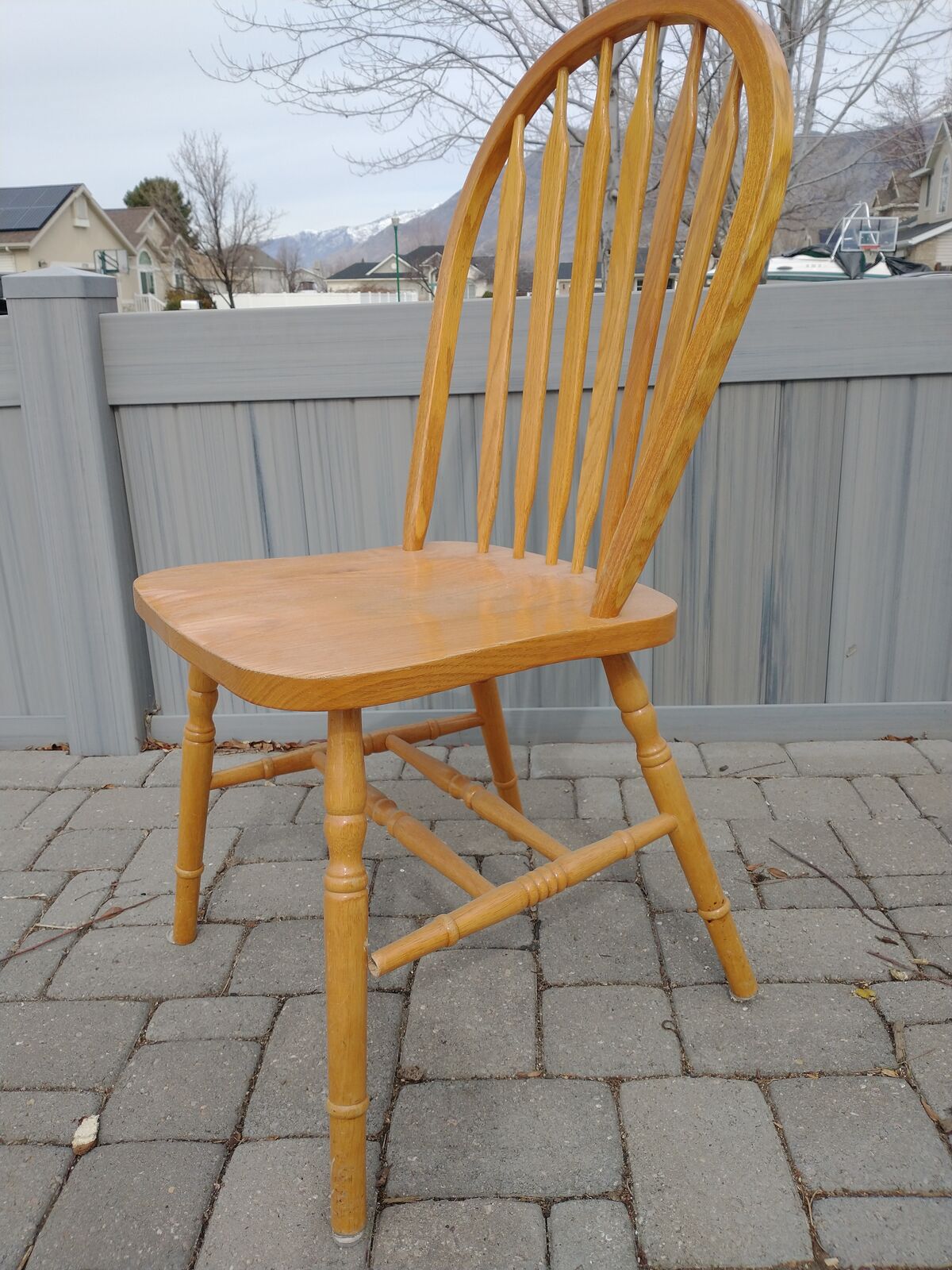 Wooden dining chair, a little wobbly, needs some fixing