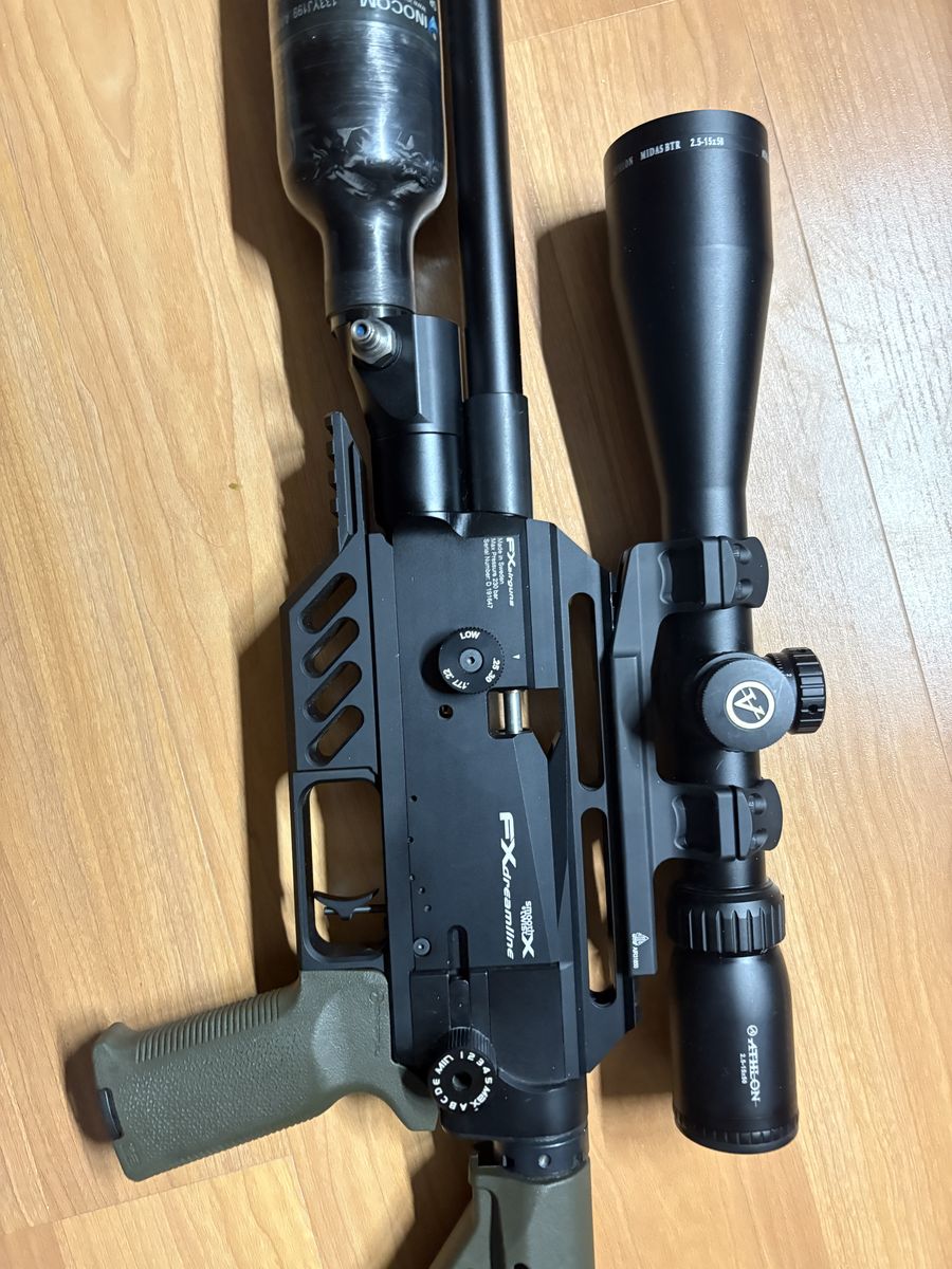 FX DREAMLINE TAC W CARBON FIBER BOTTLE Comes with an aluminum bottle as well. 2 FX magazines. Scope is a Athlon Midas 2.5x15-50