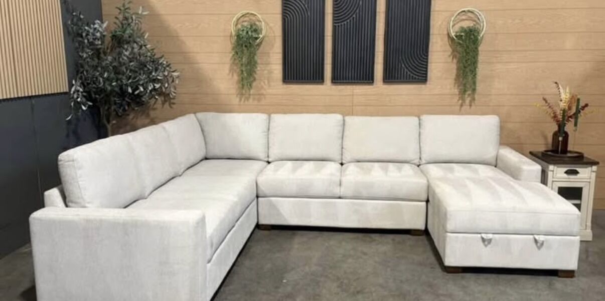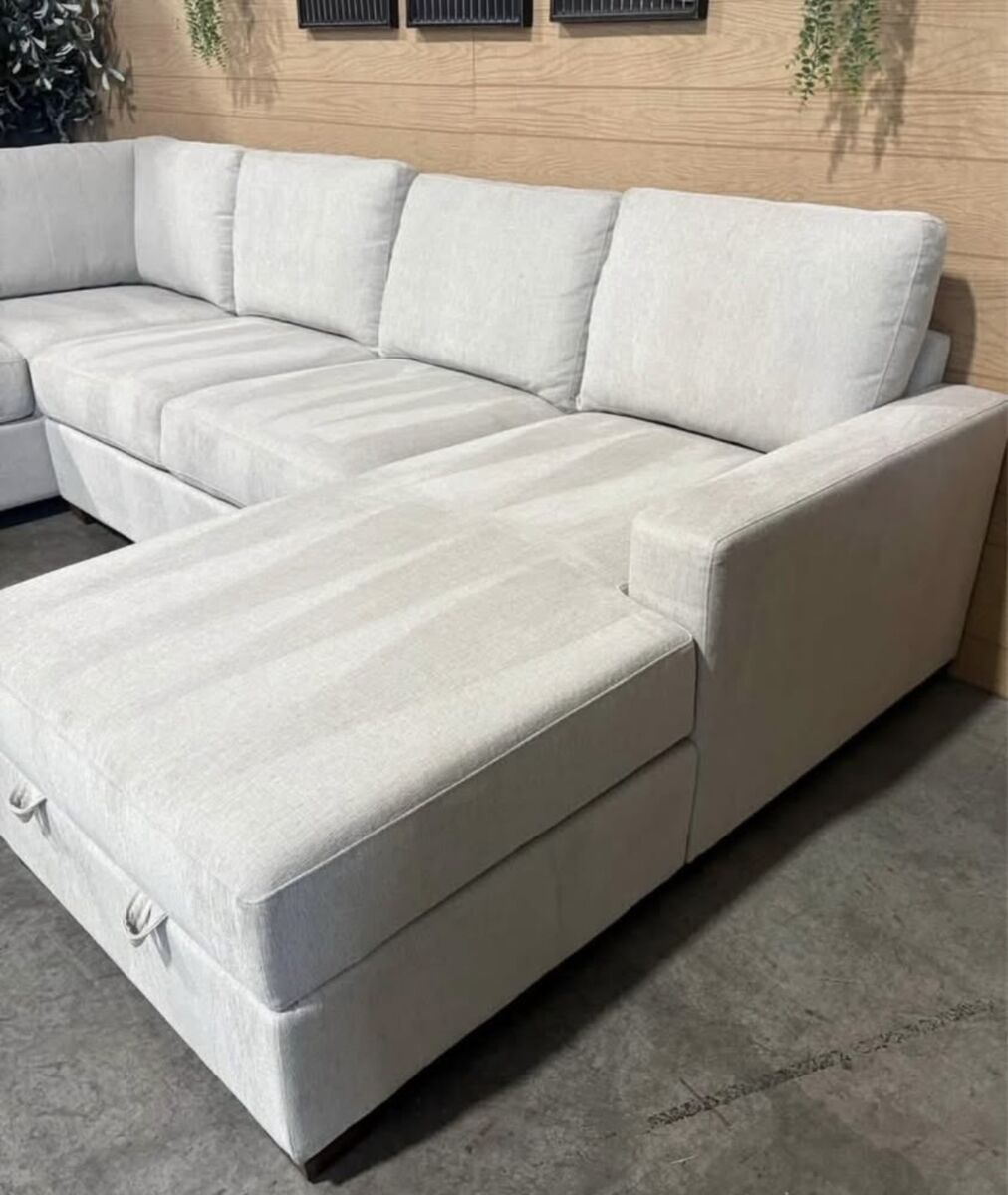 Transform your living space with the Thomasville Glenn Sectional with Storage Chaise. This modern sectional, featuring a sleek track arm design, effortlessly enhances any room with its contemporary charm. The spacious chaise offers a luxurious spot for relaxation, while the hidden storage beneath keeps your essentials out of sight but close at hand. Perfect for both entertaining and quiet evenings, the Glenn Sectional is where style meets function, making it the ideal addition to any living or family room.